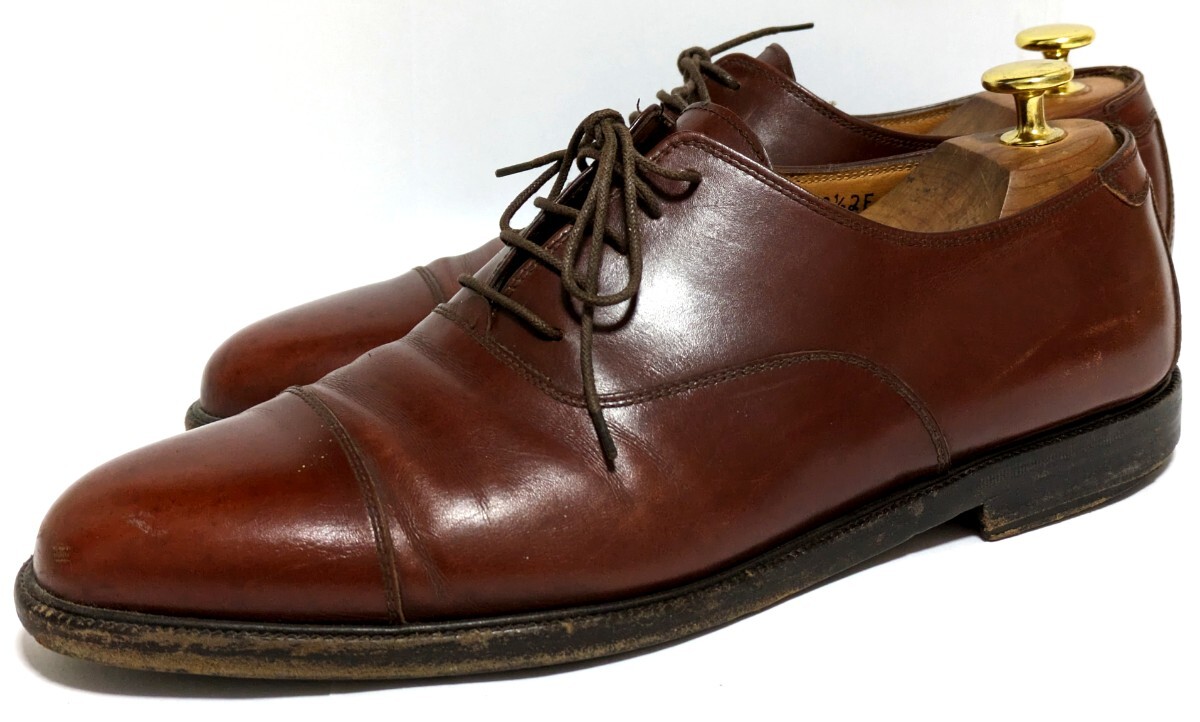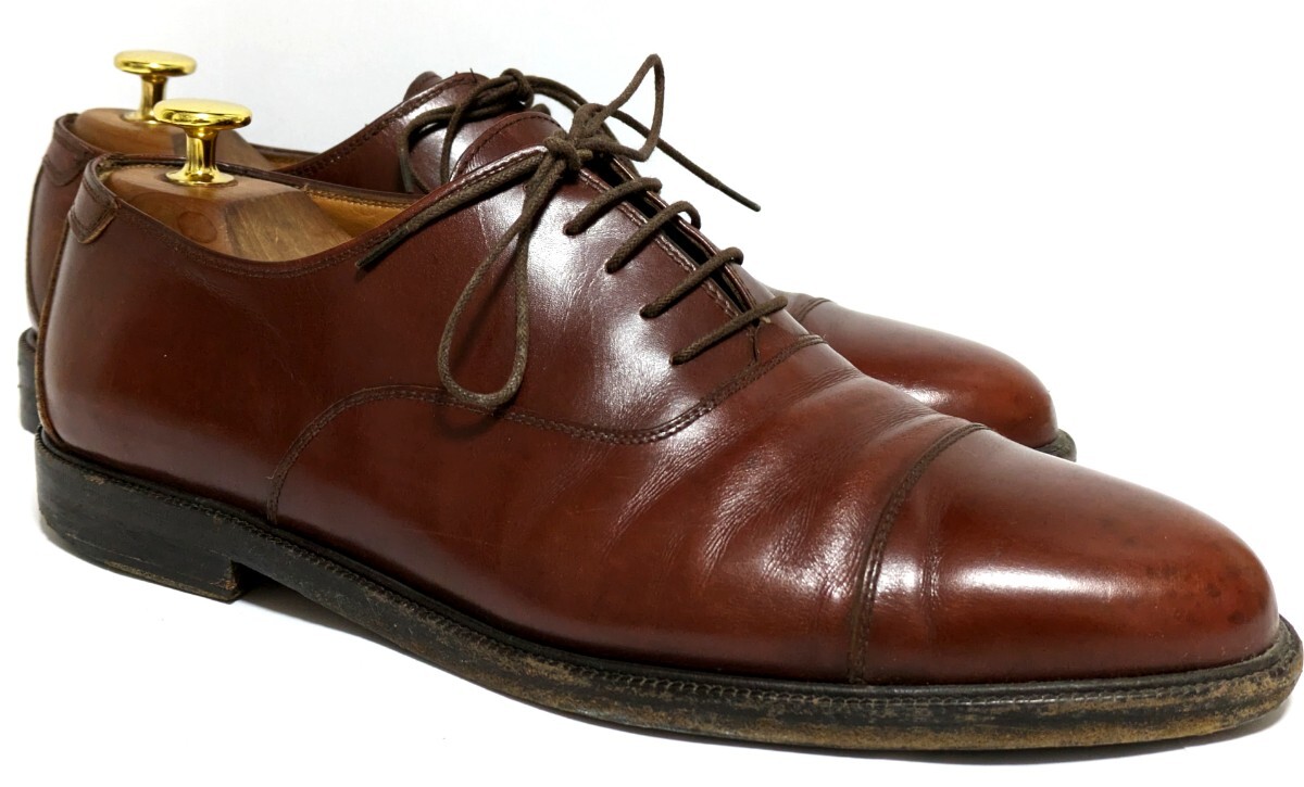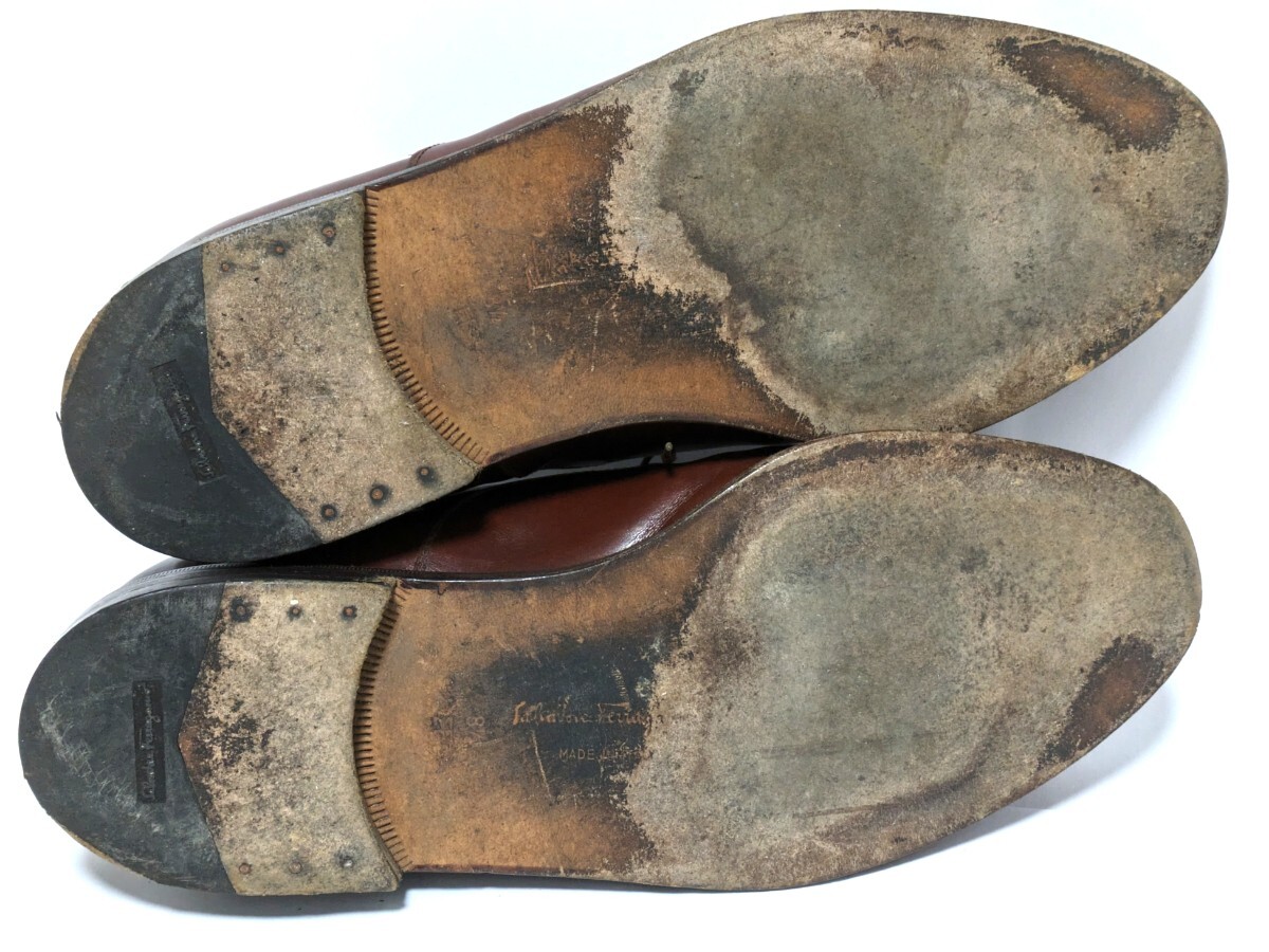 [良品] Salvatore Ferragamo 8.5EE 26.5cm 本革 レザー パンチドゥキャップ ストレート 外羽根 フォーマル イタリア製革靴