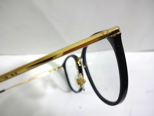 X5I031■ レイバン Ray-Ban RB7140 ブラック&ゴールド色 度付き サングラス ブルーライトカットレンズ PC メガネ 眼鏡 メガネフレーム