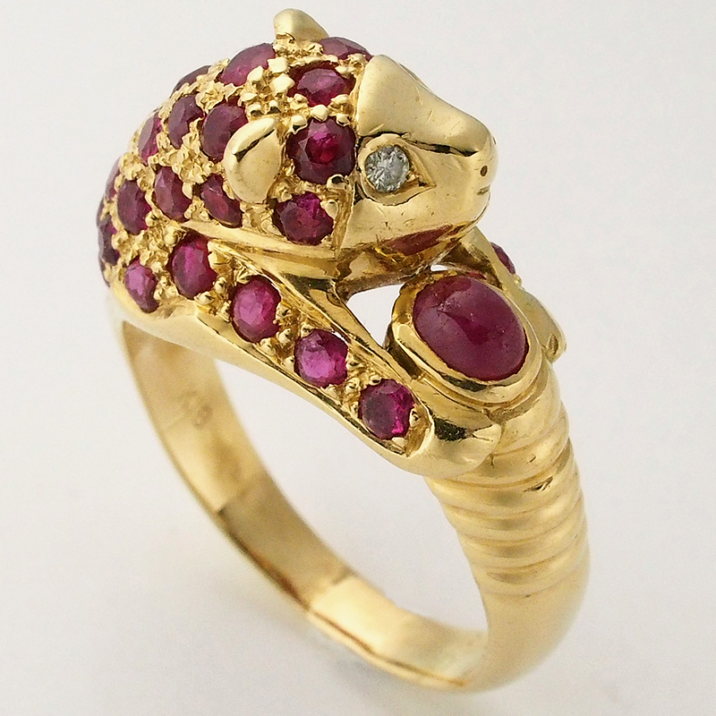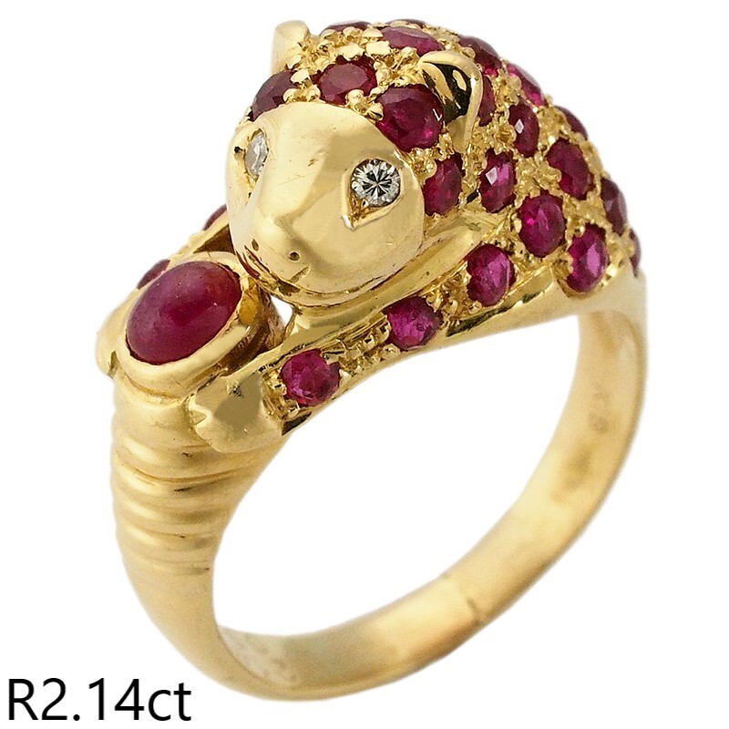 詳細:ノーブランド ルビー/2.14ct ダイヤ/0.02ct K18YG パンサー デザイン リング 12号 仕上済