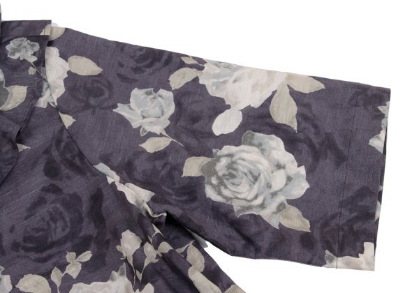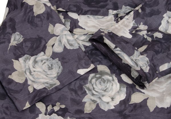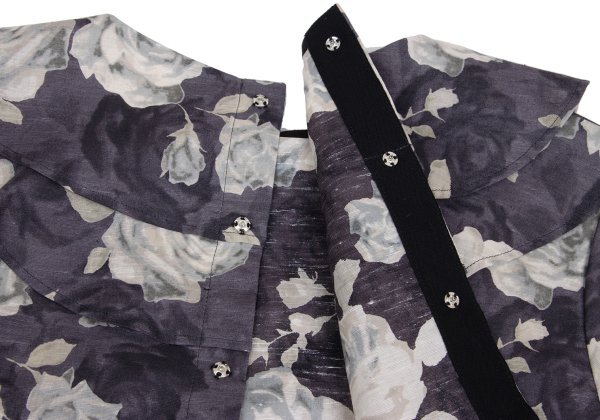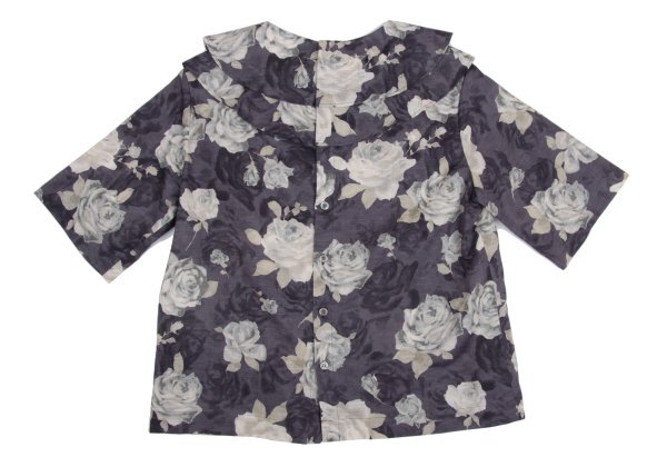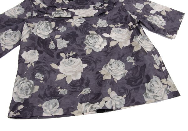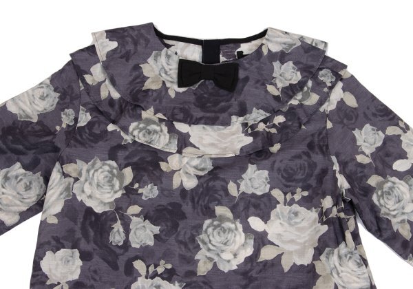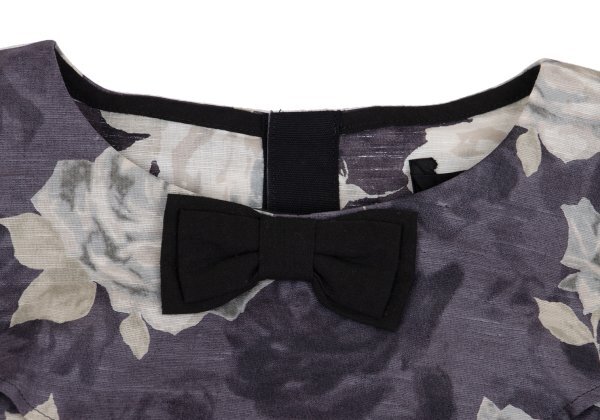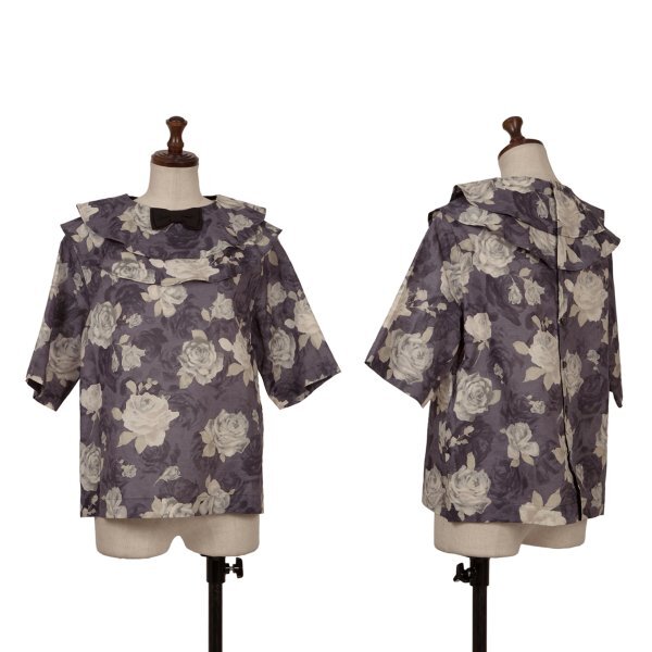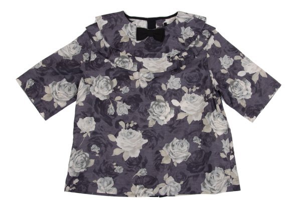 | トリココムデギャルソンtricot COMME des GARCONS ネックリボンフローラルプリントコットンリネンブラウス 紫他M |
