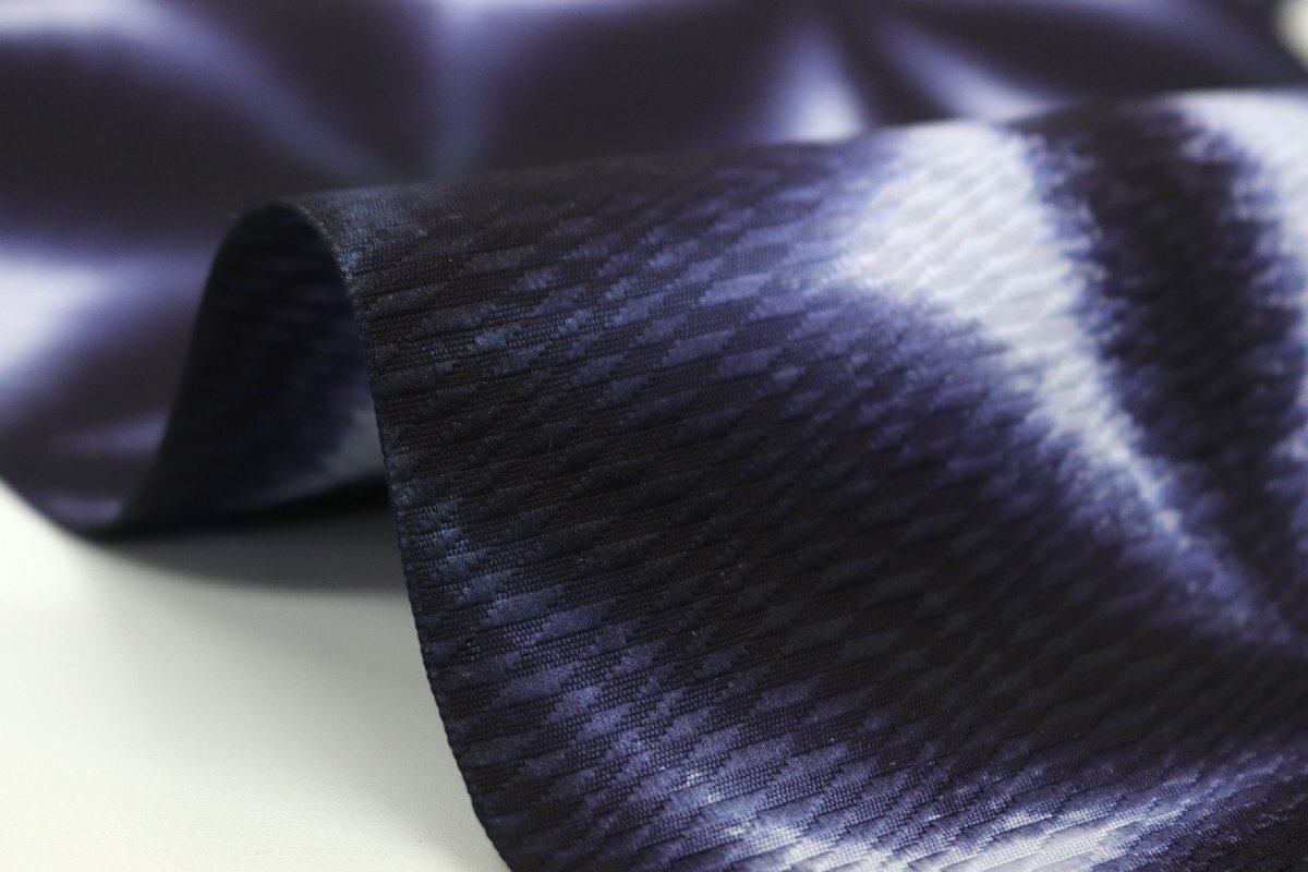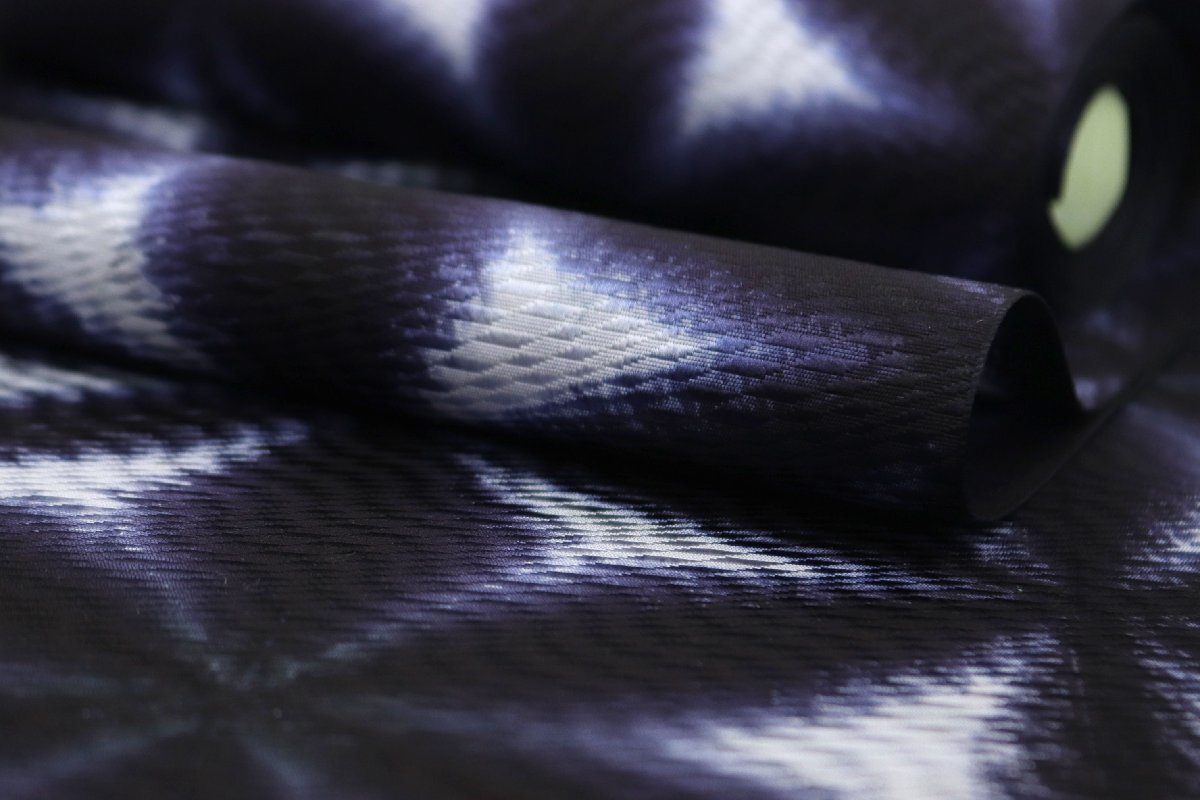 独特のにじみ・ボカシ・染色の深み等、一反一反すべての表情が変わることが絞り染めの特徴でございます。