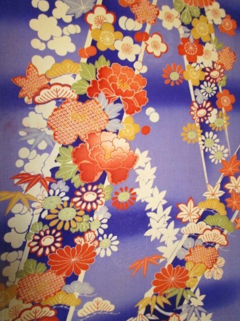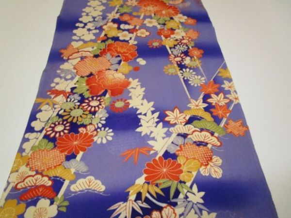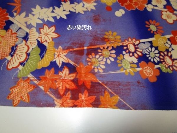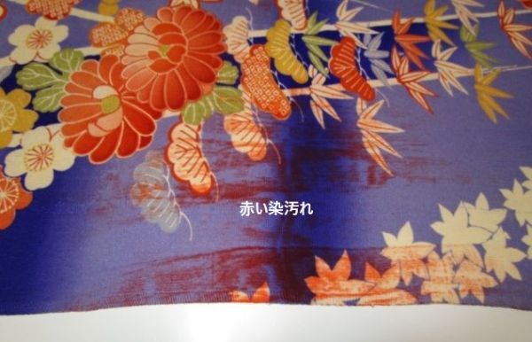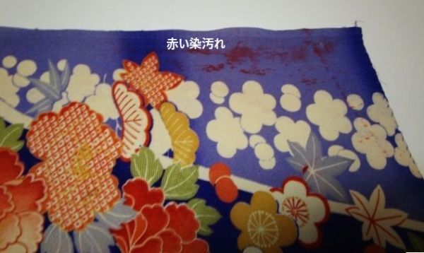 F-53★紫地*桜*牡丹*紅葉*松竹梅*綸子*古布はぎれ★赤い染汚れあり!吊るし雛/市松人形/一閑張り/文化人形
