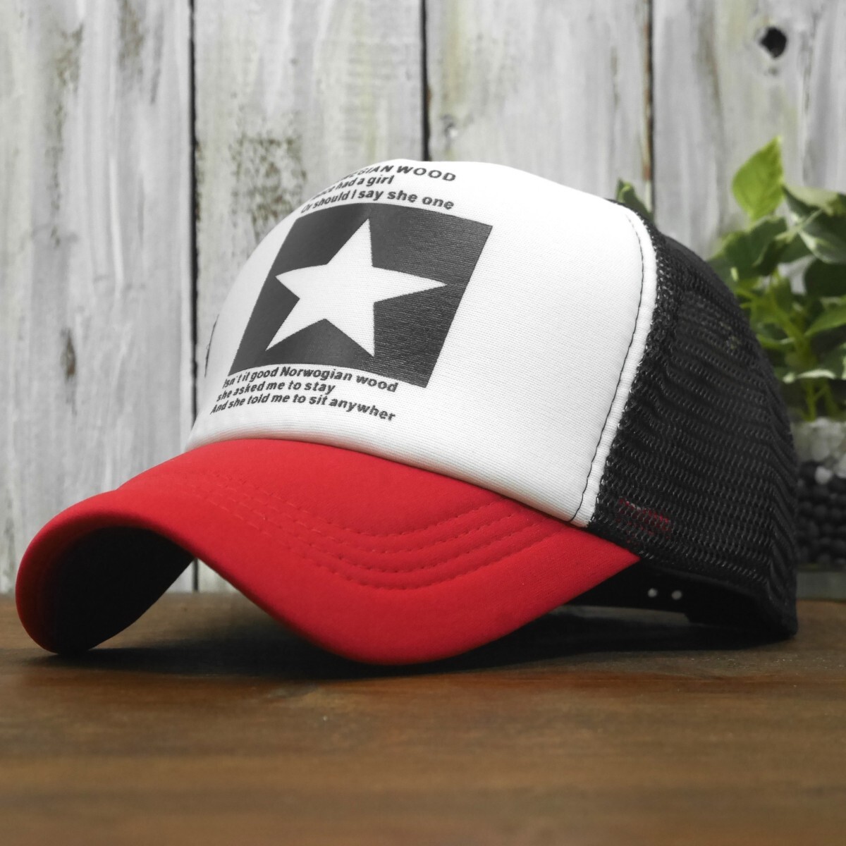 送料450円 メッシュキャップ ロゴ ☆ 星 シンプル ブラック レッド UV対策 サイズ調整可能 男女OK メンズ レディース