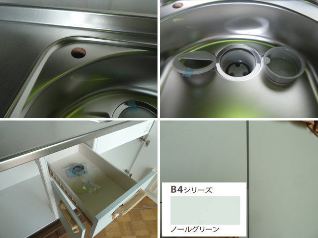 【未使用品】LIXIL Tio コンパクトキッチン ティオ 流し台 ステンレストップ 間口1500 ノールグリーン 右シンク