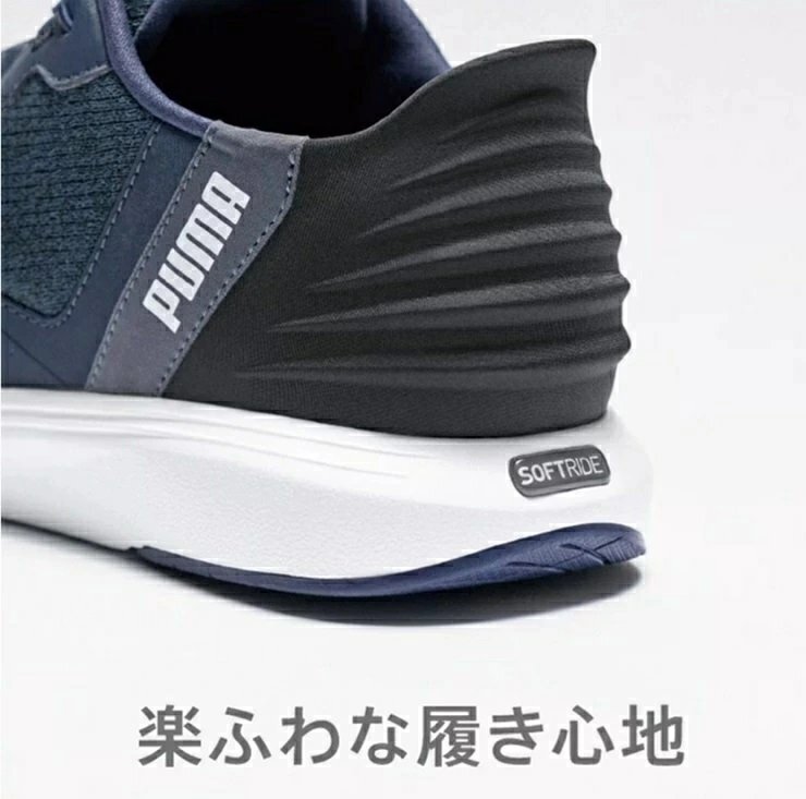 シュータン一体型のスリッポン構造の履き口、かかと部分が柔らかく、立ったまま手を使わず簡単に足入れが可能です。アッパーにメッシュ素材を採用し、軽量で通気性がよく柔らかい履き心地を実現。SOFTRIDEミッドソールは、究極のクッション性を提供し一日中快適な履き心地が持続します。通常よりワイドに設計のため、横幅も気にせず履くことができます。ランニングだけでなく、ウォーキングや外出時にもおすすめの一足です。 | |