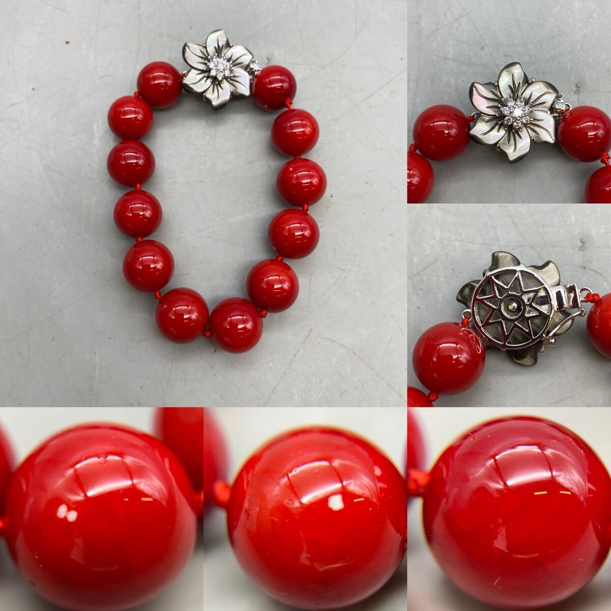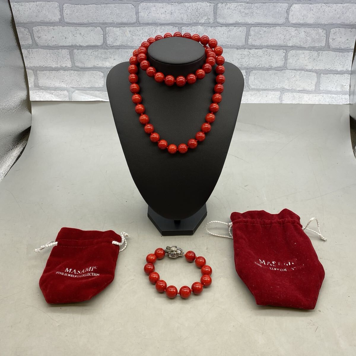 【X-70】 MASAMI FINE JEWELRY COLLECTION 貝パール ネックレス ブレスレット まとめて 赤 レッド