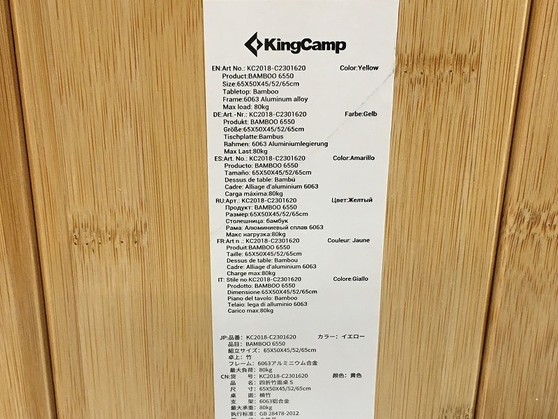 キングキャンプ King Camp 【並品】BAMBOO 6550 折り畳みバンブーテーブル KC2018-C2301 620