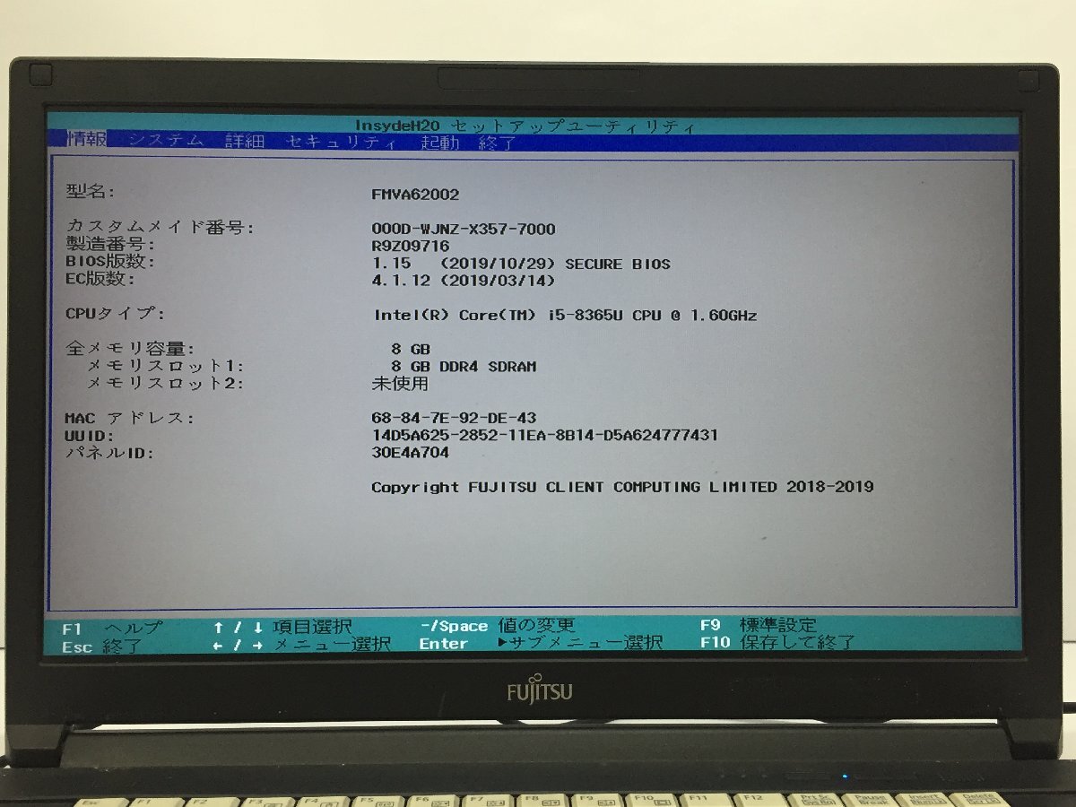 ジャンク/ FUJITSU FMVA62002 LIFEBOOK A579/A Intel Core i5-8365U メモリ8.19GB ストレージ無し 【K20928】