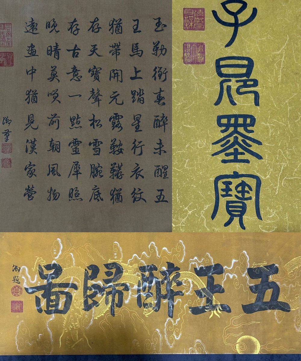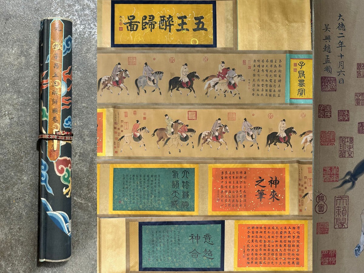 【瓏】「趙子昂作 五王醉帰図手巻」元代画家 肉筆絹本 掛け軸 書画横軸 巻き物 中国書画 古美術 蔵出