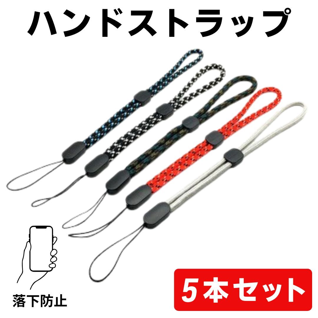 ハンドストラップ 5本 セット 落下防止 調整式 アジャスター付き リストストラップ スマホ 携帯 懐中電灯 キーホルダー カメラ