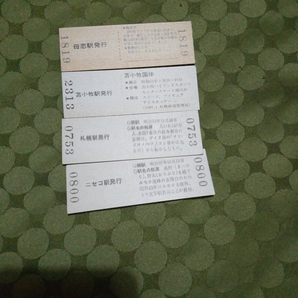 希少 昭和 レトロ 国鉄 北海道鉄道 記念切符 見本券 母恋駅 苫小牧駅 札幌駅 ニセコ駅 4枚セット