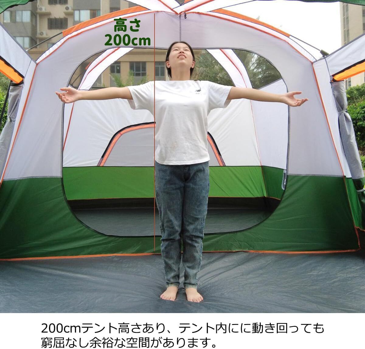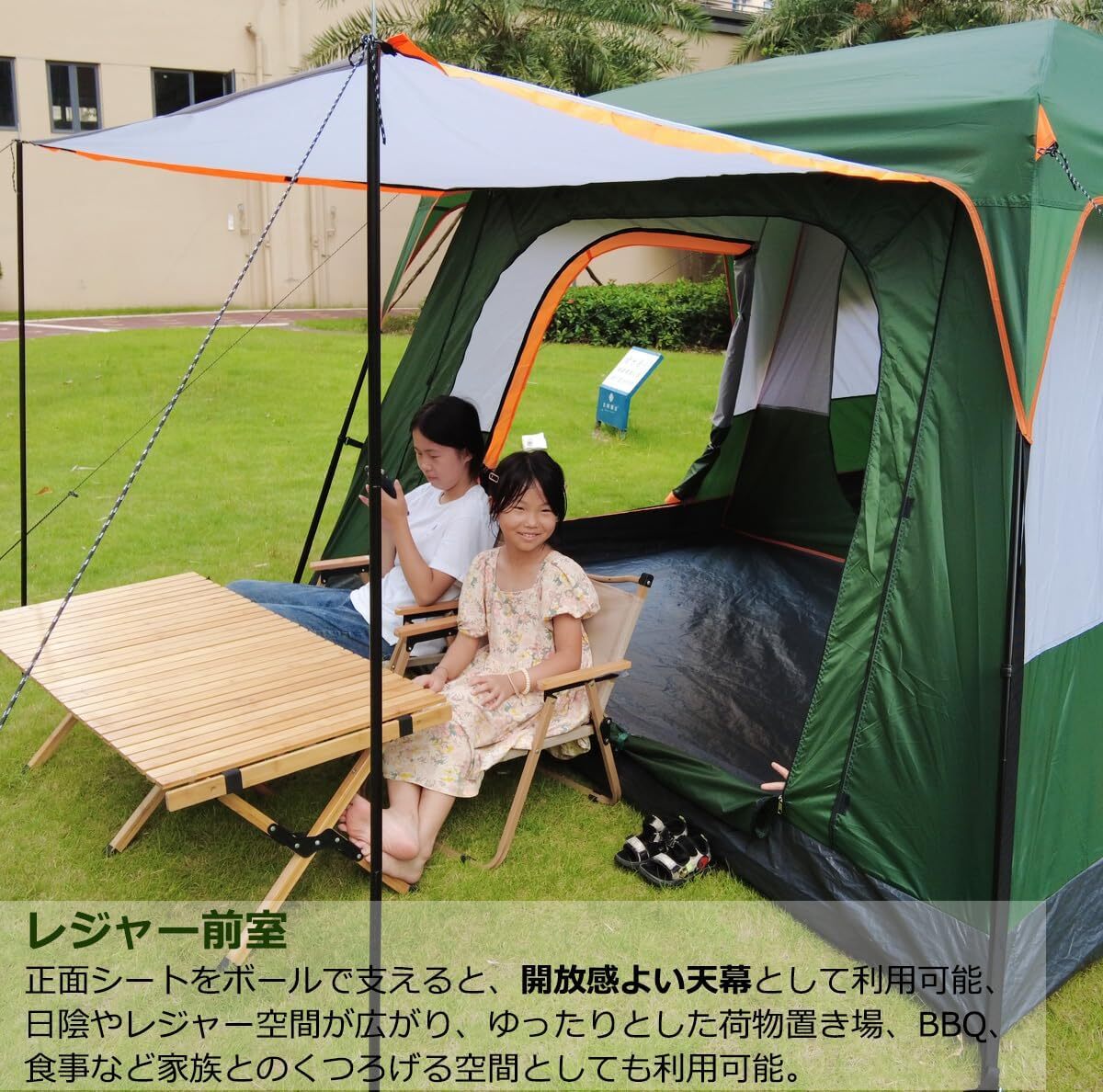8-12人用 ミリタリー色 キャノピーテント リビング+2ルーム付き 快適な居心地 防雨 日よけ 家族連れ 友達多人用 Fengzel Outdoor