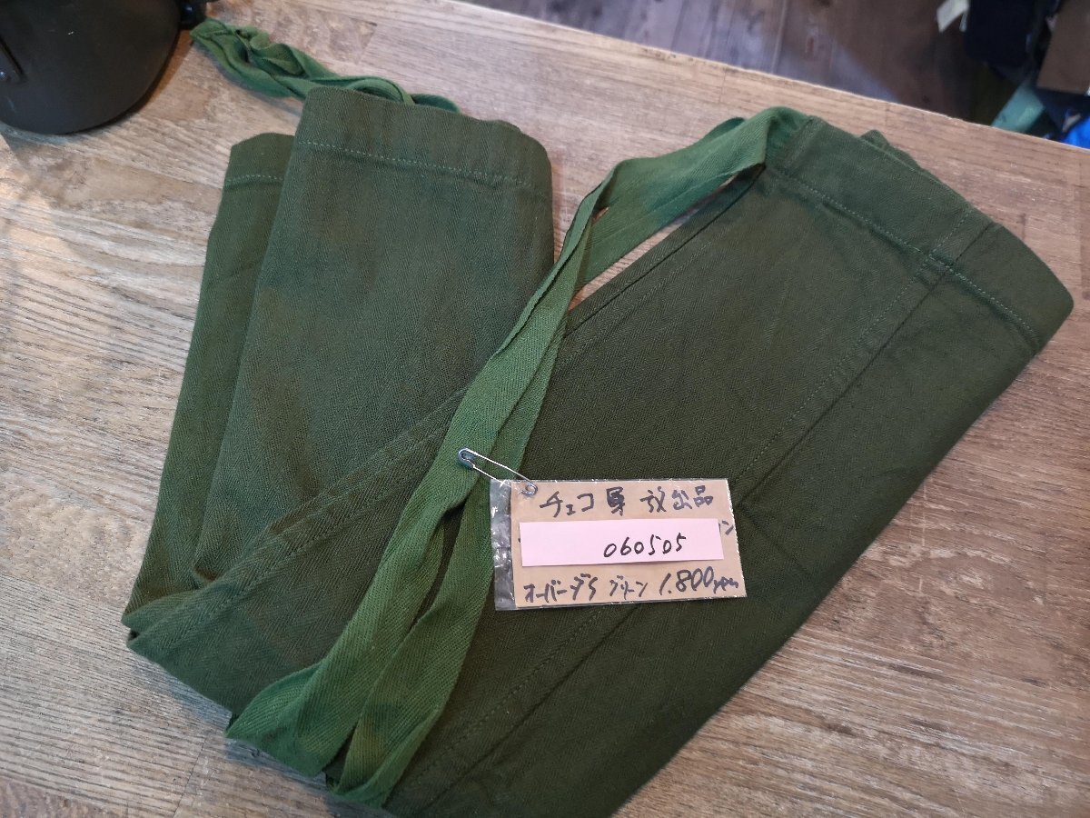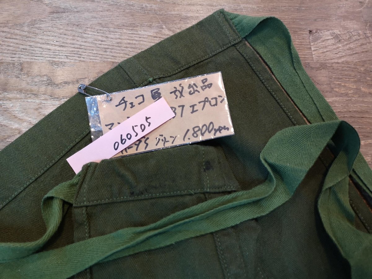 チェコスロバキア軍のエプロン。1.2枚目の写真は流用です。 主に1980年代に作られたソムリエタイプのエプロンで、大変シンプルな作りが魅力の一枚。性別を問わず、普段使いは勿論、ガーデニング等にもお使い頂ける実用性の高い逸品です。もともとはカーキ色ですが後染めでカラーバリエーションをつけました。丈:65cm程度。 クロネコネコポス便200円でお送りいたします、落札価格にプラスでお願いいたします。