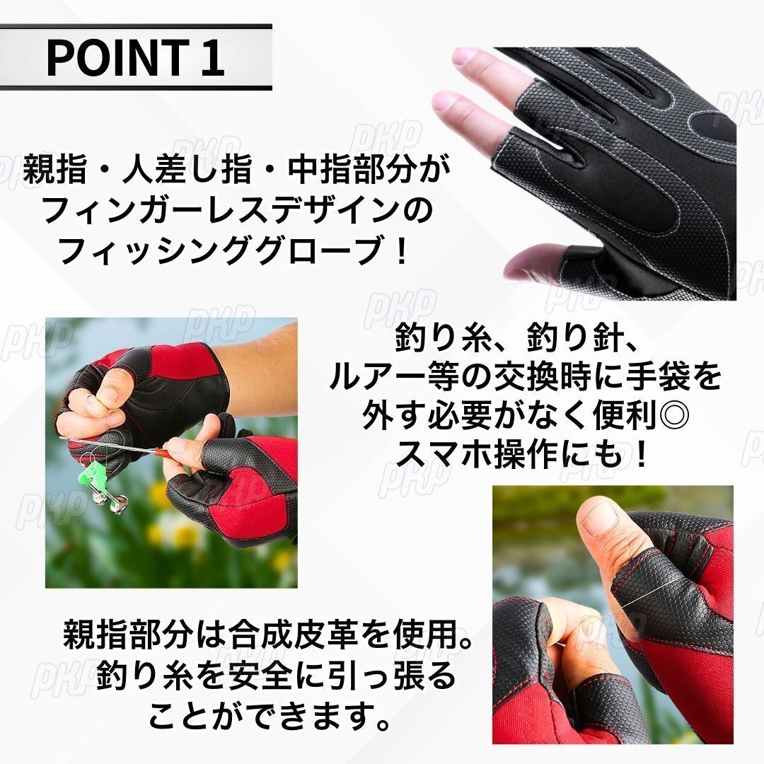 ★ 親指・人差し指・中指が出せる仕様で、細かいものもしっかりと掴める! 釣りの際のルアーやフックの交換ももたつきません。 スマートフォンの操作をするのにも大変便利です!