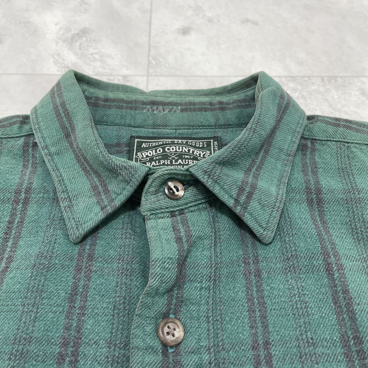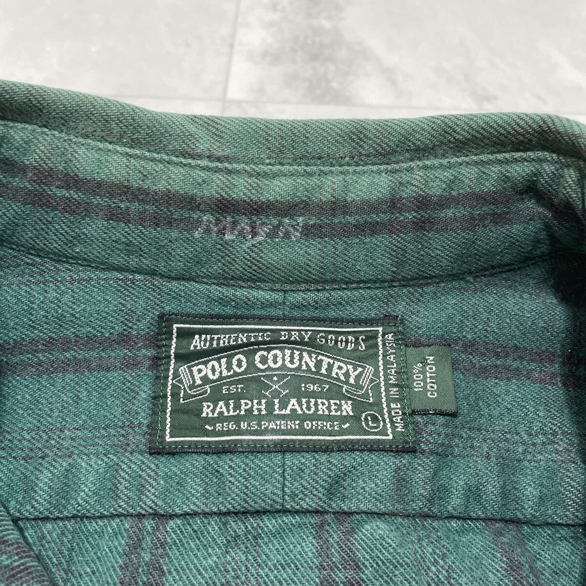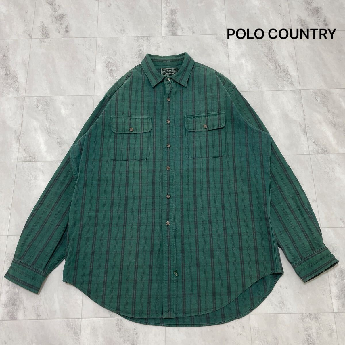 POLO COUNTRY ポロカントリー 80s 90s ラルフローレン コットンシャツ shirt 長袖 チェック柄 ヴィンテージ 80年代 90年代 USA企画 肉厚 アメカジ グリーン サイズL 玉ss4261