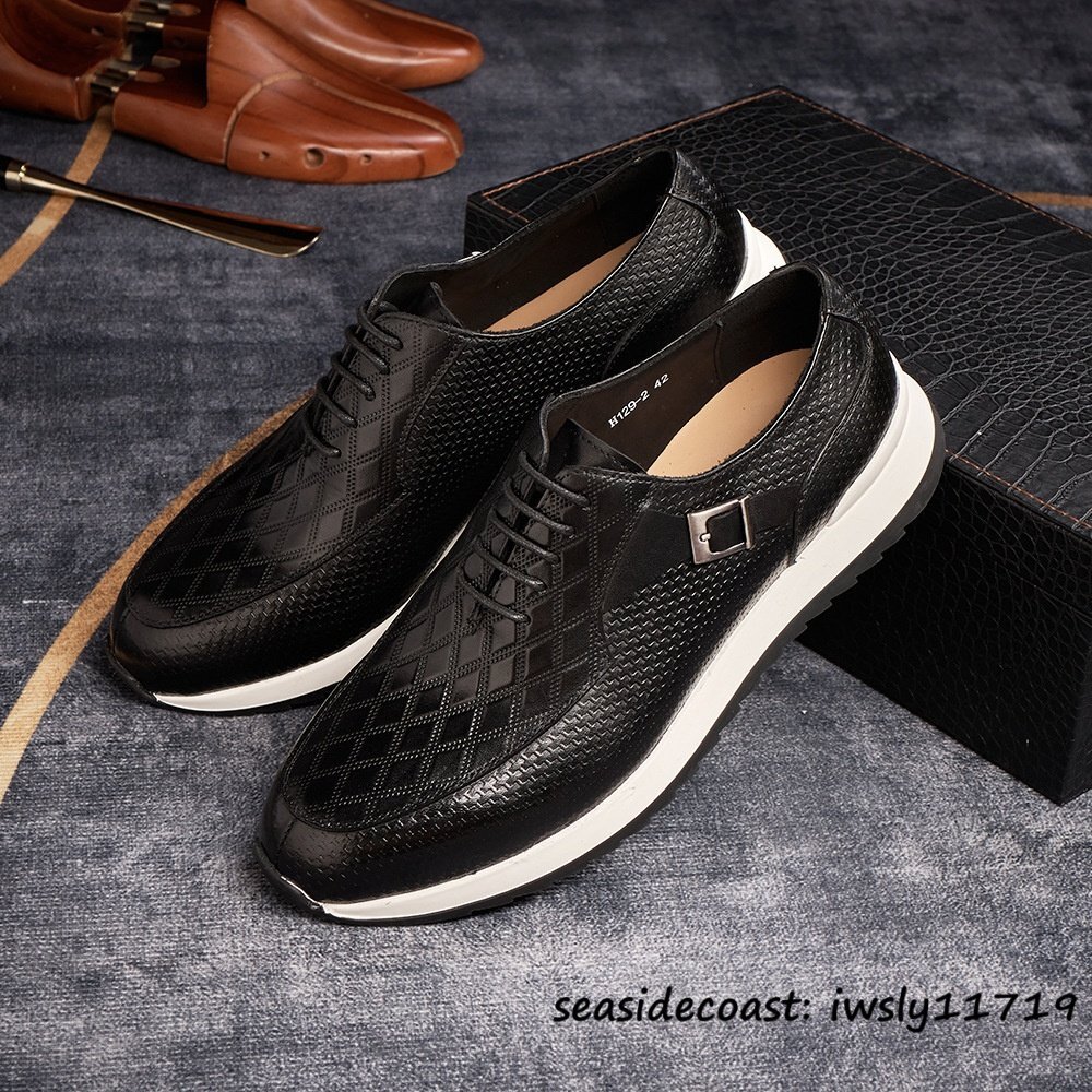 定価10万◆スニーカー メンズ 透かし彫り 通気性 ビジネスシューズ 本革 レザーシューズ イギリス風 革靴 紳士靴 高級牛革 ブラック 26.5cm
