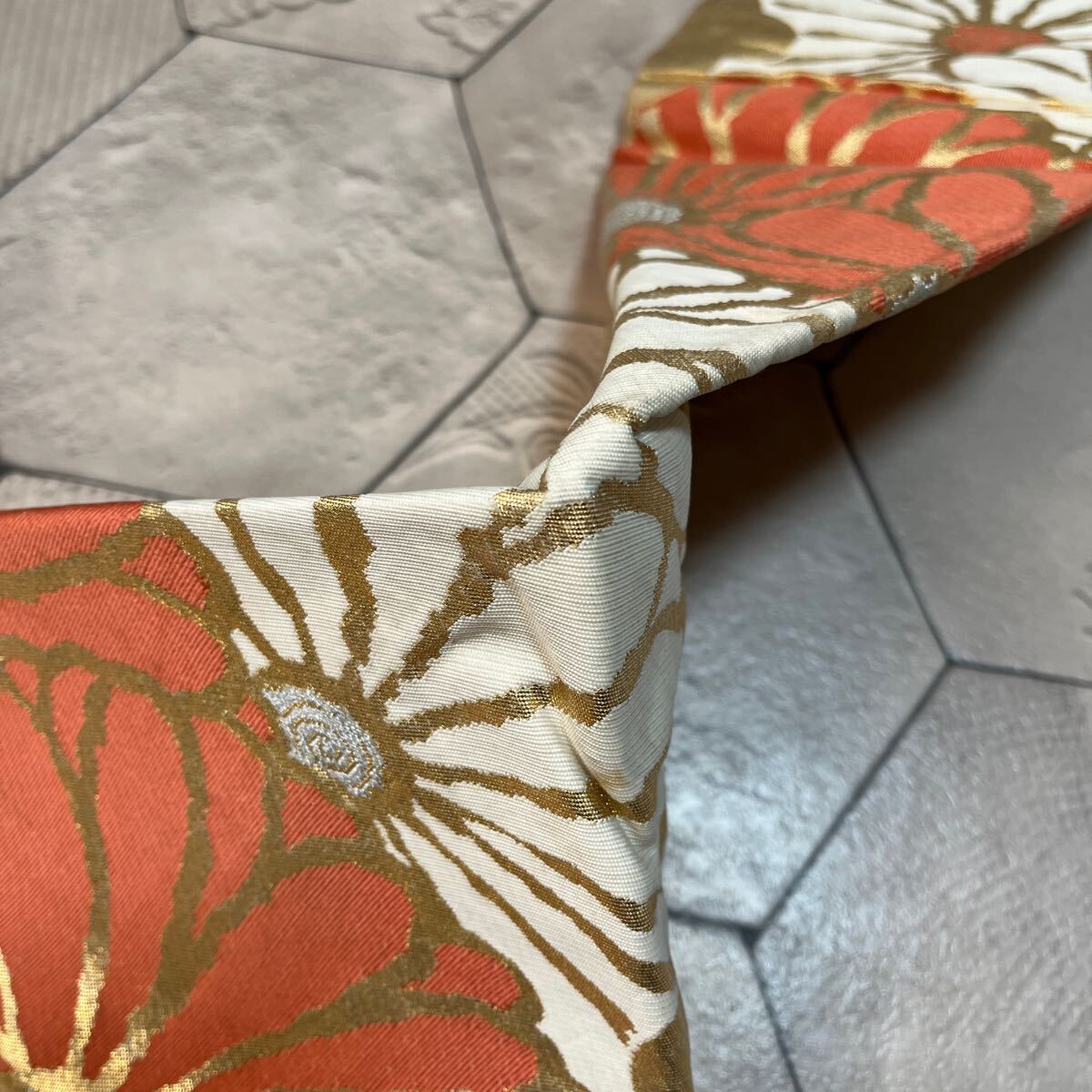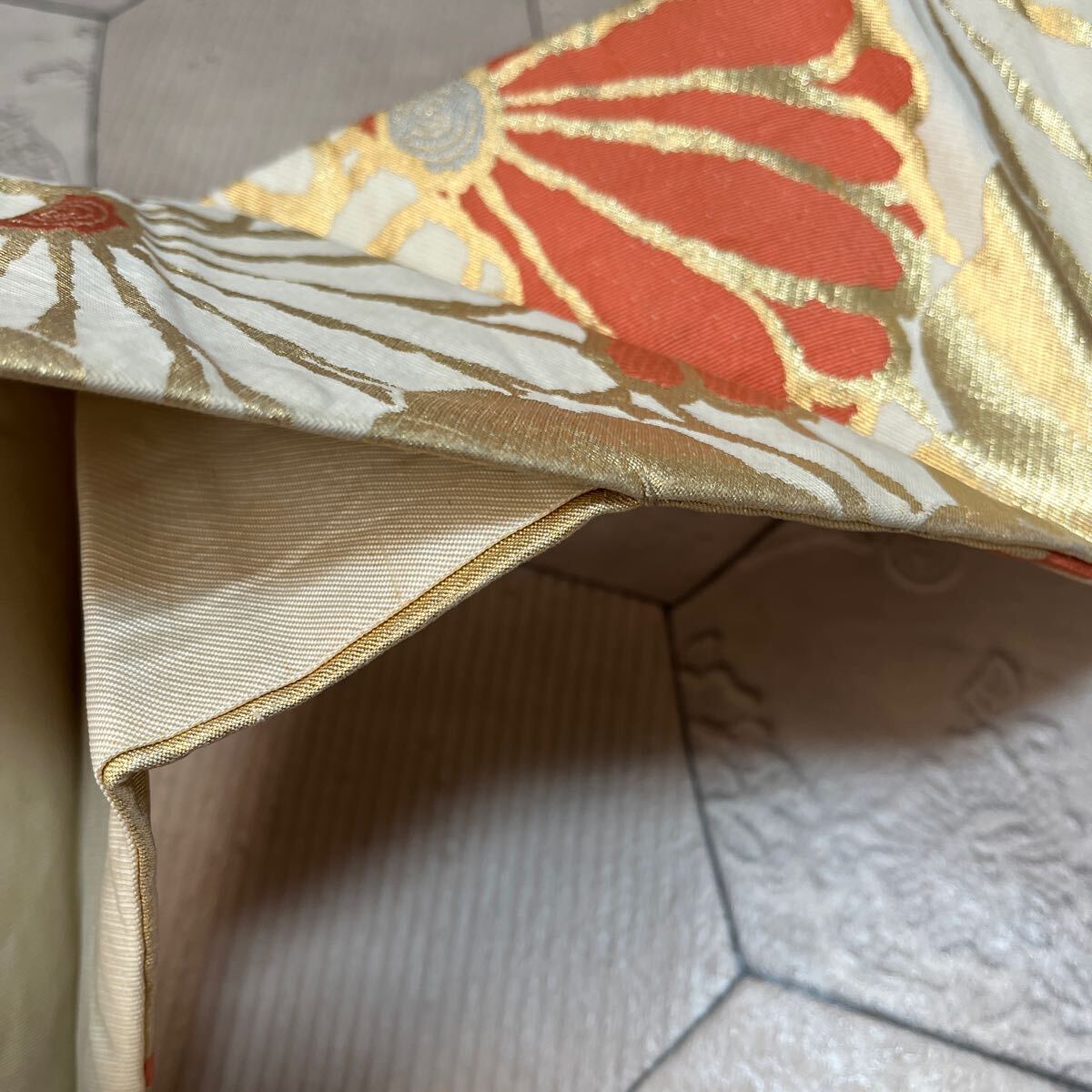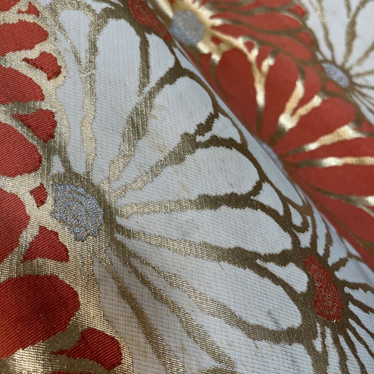 アンティーク 名古屋帯 着物 リメイク用 菊 金糸 白地 昭和レトロ 大正ロマン モダン 和洋折衷コーデ け09-11y