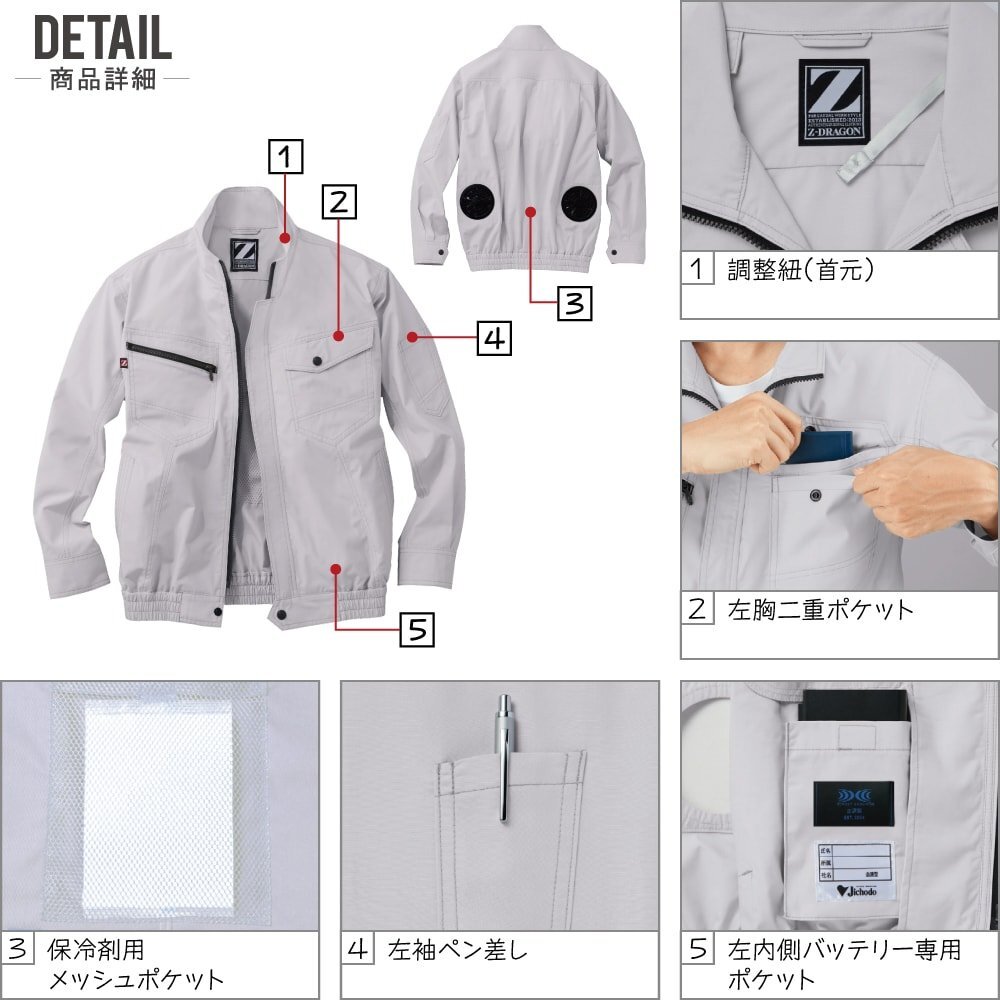 | 注意事項 | ※本商品はお支払確定後、約3~4日後出荷となりますのでご了承下さい。 ※本商品は服単品となります。 バッテリー・ファンは付属しておりません。 ※炎天下の車内等(高温の場所)に放置しないよう、ご注意ください。 羽が折れる可能性があるため、エアーガンによるファンの清掃は行わないでください。 専用バッテリー以外は使用しないでください。故障や事故の原因になります。 この素材は火気に弱い素材なので、火気を扱う現場では着用しないでください。 ※本商品の性質上、ごく稀にご希望商品が無い場合が御座います。その際は申し訳ございませんがご容赦下さいませ。 | 返品・交換 | ※本商品の性質上、返品・交換不可となりますので予めご了承下さい。(初期不良・弊社不備の場合は、商品到着後一週間以内は返品・交換可能) ※返品・交換詳細はコチラのご利用案内をご覧下さい。 |