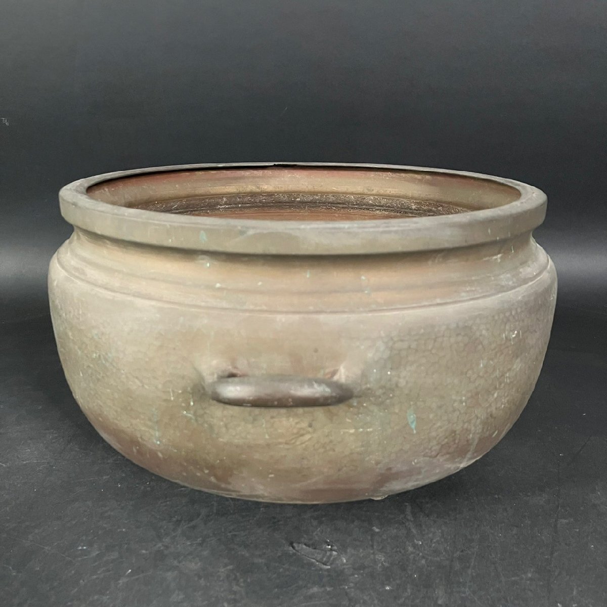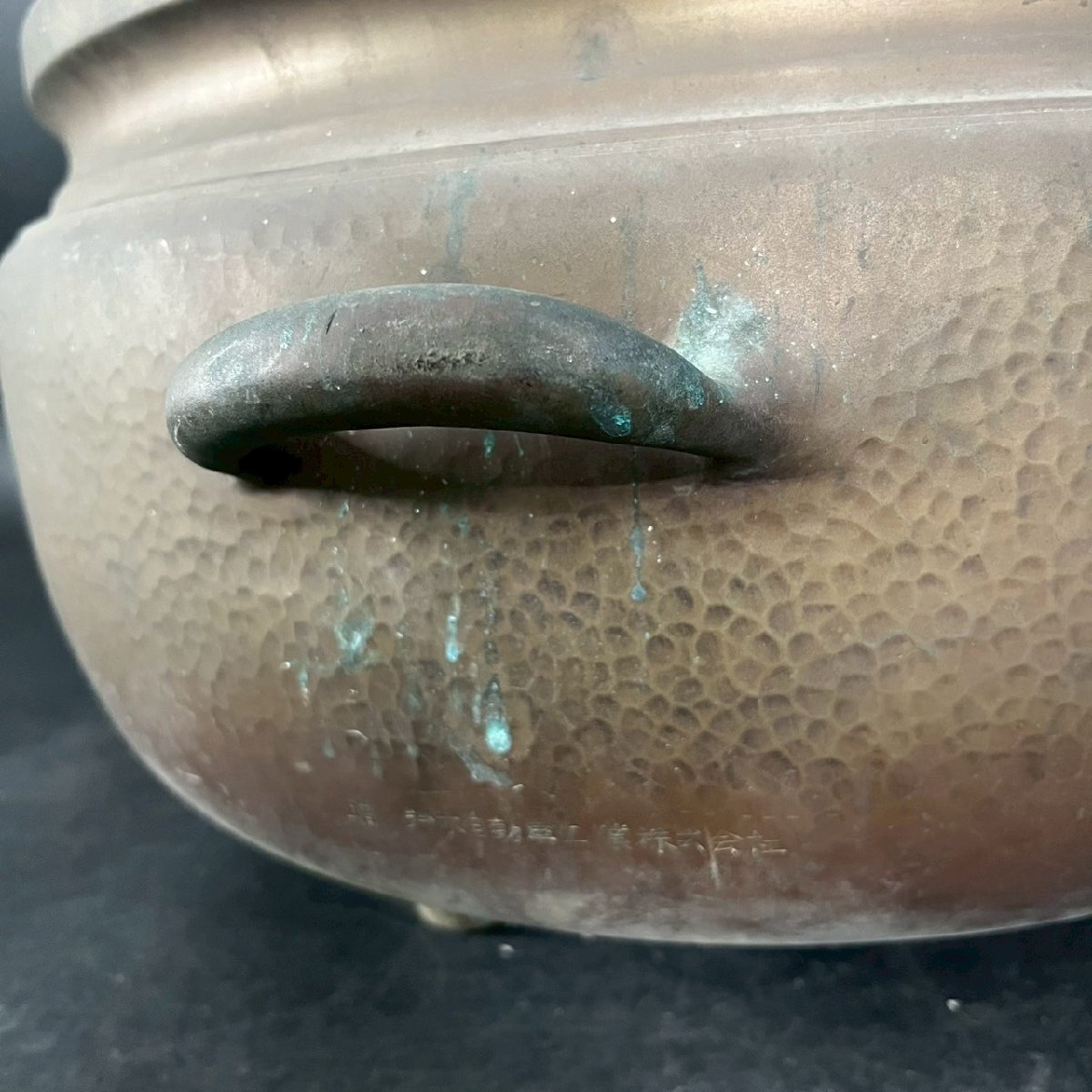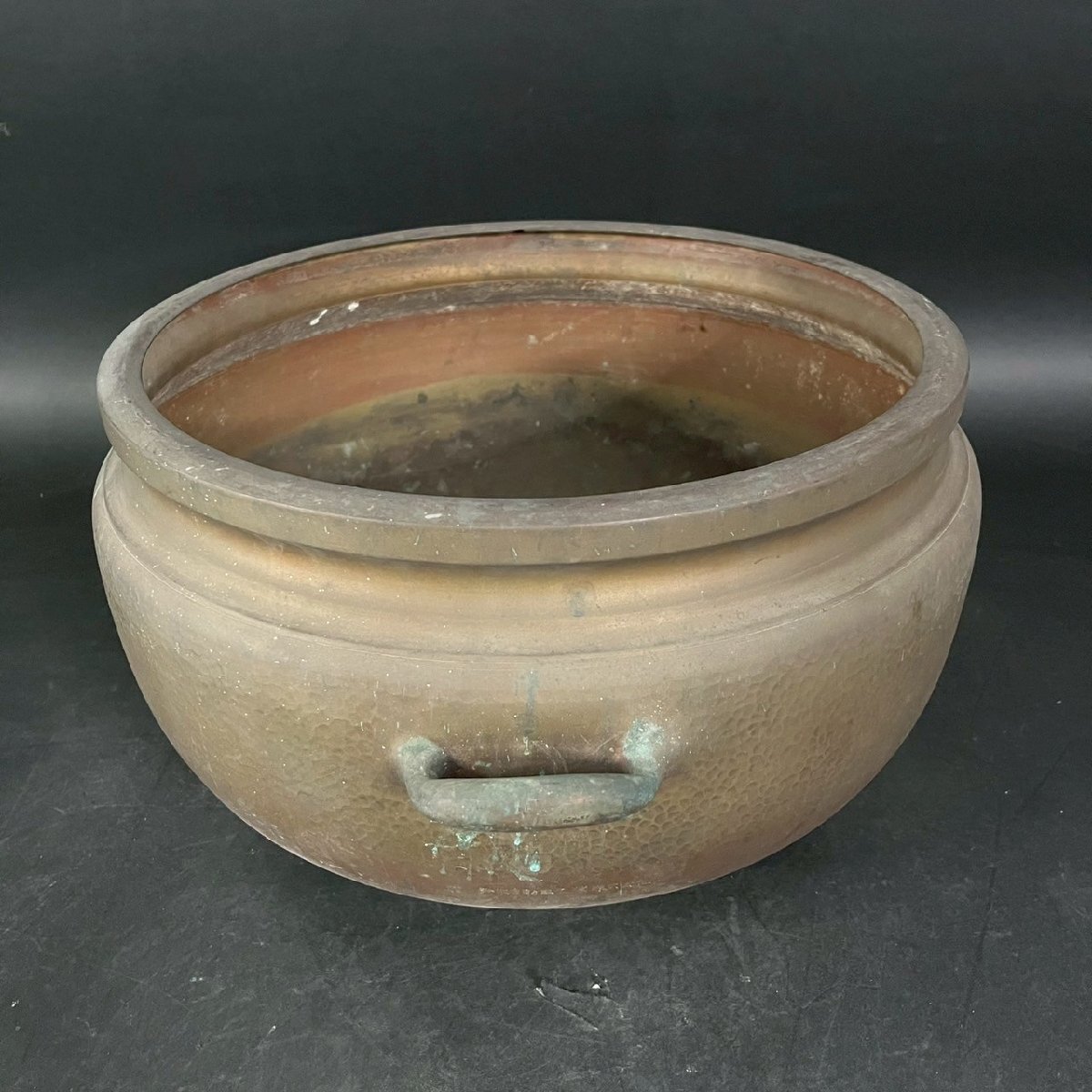 OM0811-12‐3 火鉢 大型 銅製 古小道具 茶道 茶道具 茶器 窯 銅製 銅器 唐銅 伝統 工芸 骨董品 置物 高さ24㎝ 口径35㎝ 140サイズ
