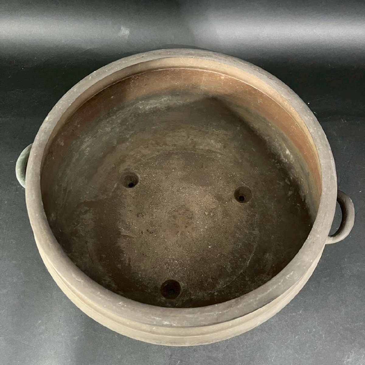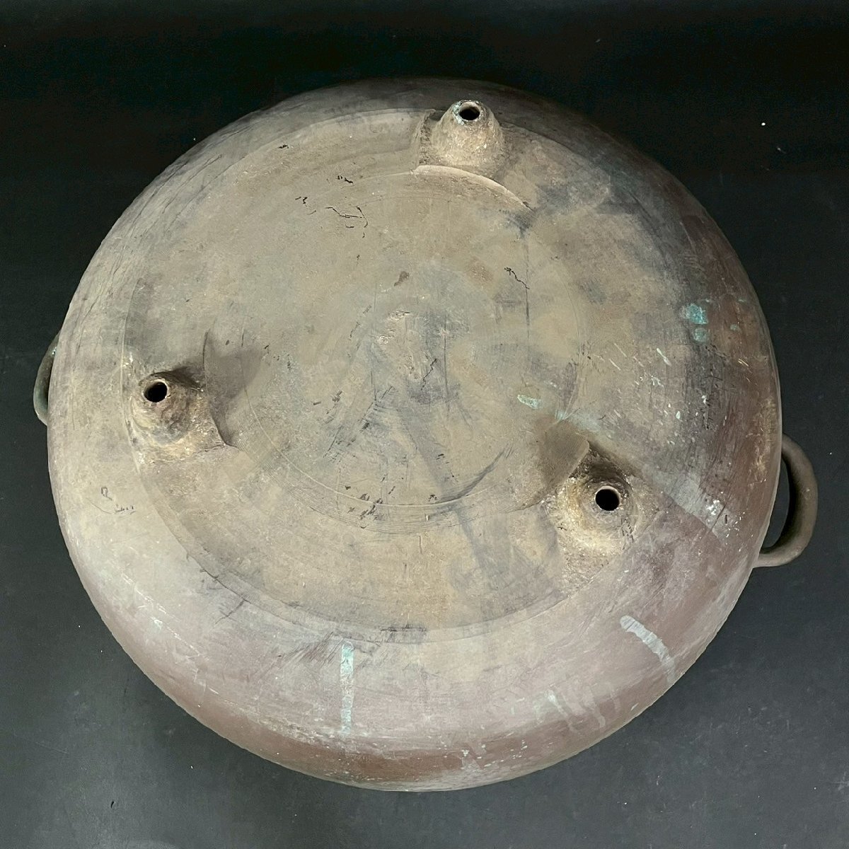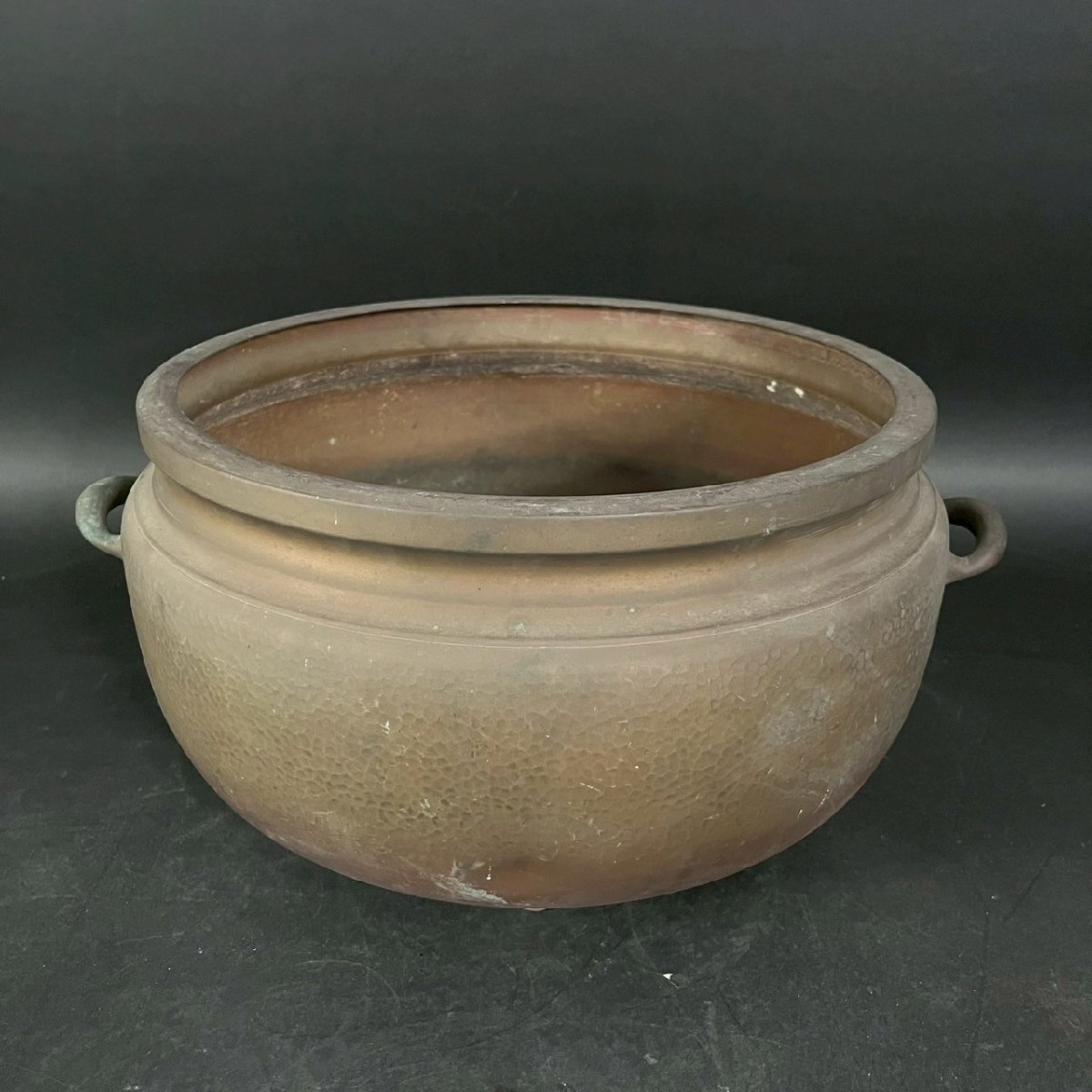 OM0811-12‐3 火鉢 大型 銅製 古小道具 茶道 茶道具 茶器 窯 銅製 銅器 唐銅 伝統 工芸 骨董品 置物 高さ24㎝ 口径35㎝ 140サイズ
