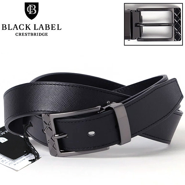 定価 24,200円 新品 BLACK LABEL CRESTBRIDGE シャドーチェック ブラックメタルバックル エンボスレザー ベルト 465-09