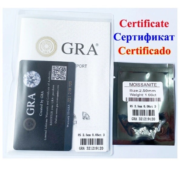 これにより、ダイヤモンドテストに100% 合格し、モアッサナイトの側面に証明刻印コードを付けています。
