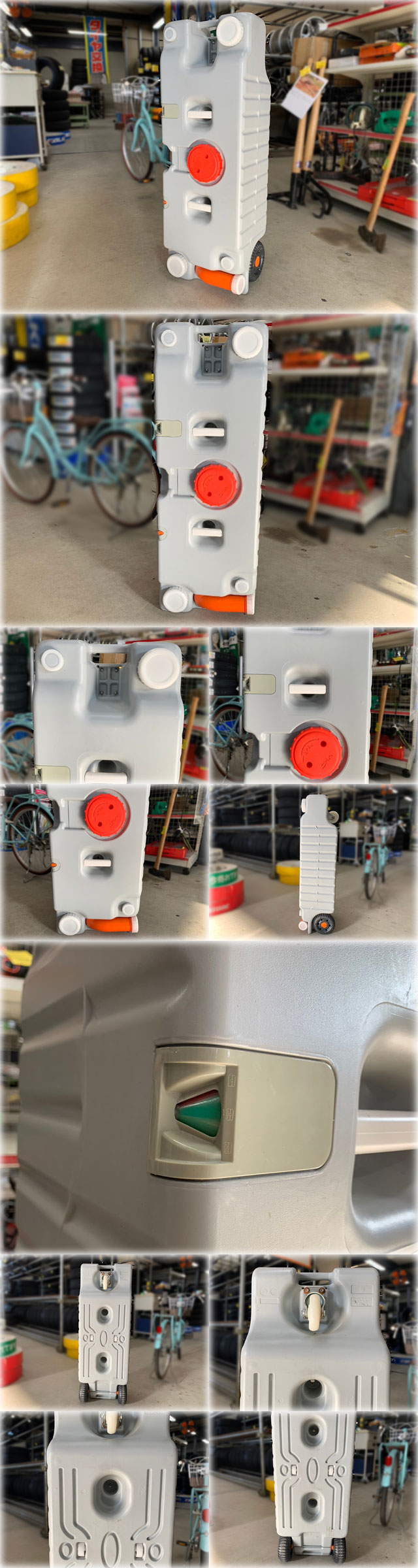 CHH 車輪付ウォータータンク CHH-568 出品いたします。 アウトドアや災害時に使える! 大容量70Lのウォータータンクになります。 ■特徴■ 優れた耐衝撃性、耐落下性、一体成型技術で製造されています。 ホイールが三カ所についており持ち運びも非常に便利です。 平たいのでキャンピングカーやキャンピングトレーラーの下部に 排水タンクとして利用できます。 キャンピングカーの排水タンクにキャンプの際の洗浄水に最適です。 ★70Lの超大容量で大人数のキャンプにも最適です。 ★キャンピングカーやキャンピングトレーラーの給水や 排水タンクとしておすすめです。 ★平たいのでキャンピングカーや キャンピングトレーラーの下部に邪魔なく設置できます。 ★持ち運びに便利なキャリーハンドルがあります。 ★90度動いて排水がしやすい排水専用管があります。 ★内容量の水位を一目で見れる水位メーター付き、 ★給水口が大きいので清掃も簡単です。 ★排気ボタンで内外圧を調整することにより、排水時の飛沫を防ぎます。 ★内外圧を調整する排気ボタン付き。 ★タイヤはプラスチック製の大口径の車輪2個と丈夫な可動式の前輪の3輪で 多少の悪路でも快適に運べます。 ★耐落下、耐衝撃性に優れています。 ■仕様■ 【 排気ボタン 】 内外の空気圧のバランスを取り 汚水排水時の飛沫を防止します。 【 水位メーター 】 メーターがあるので水量を簡単に確認できます。 【 大口径ホイール 】 移動も簡単です。 【 キャリーハンドル 】 手の構造を考えられて作られていて 楽に持つことができます。 ■落札時注意■ 複数在庫ありますが、ひとつずつの出品となります。 2台まとめて購入をご希望の場合は 事前にご質問で在庫の確認をお願いします。 在庫は変動するため、 希望時には1台のみとなっている可能性があります。 複数台ありますが同じ写真を使っての掲載となります。 そのため、多少の状態の違いはありますが予めご了承ください。 ■発送■ アート家財おまかせ便Bランクでの発送となります。 ※2台まとめて購入の場合、Bランク×2となりますので予めご了承ください。 格安出品いたしますのでこの機会にぜひ!! ■------------------------------- 長野リサイクルセンター本店では 多くの生活必需品である電化製品をはじめ、 車製品、業務用工具から家庭用工具まで 数多くの品を取り扱っています! レトロ品などの時代物もあります。 お宝に出会えるかもしれません! この機会にぜひご覧ください ^^ --------------------------------■ |