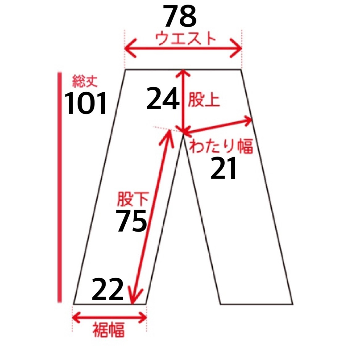 ウエスト(平置き実寸×2倍) 約78~80cm