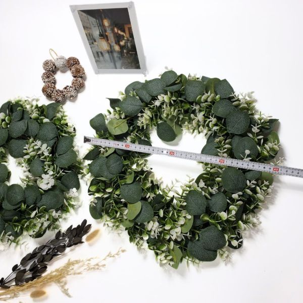 ~商品説明〜サイズ直径:30cm(裏側 円形) :40~43cm(表側 葉の部分) 数量:1個シンプルでナチュラルな魅力を持つ ユーカリリースは、どんな空間にも 優雅な雰囲気を添えるアイテムです。 直径40センチと存在感のあるサイズながら 軽やかで洗練されたデザインが特徴です。 高品質なアーティフィシャルフラワー(造花)を 使用しており、本物のユーカリの葉のような リアルな質感と色合いを再現。 枯れる心配がなく、長期間美しさを保つため お手入れの手間も最小限です。 リビングルームや玄関 ダイニングスペースの壁に飾るだけでなく ドアリースとしてもご利用いただけます。季節やイベントに合わせてリボンや オーナメントをプラスしてハンドメイドを行えば 一年を通じて楽しめるアレンジも可能です。
