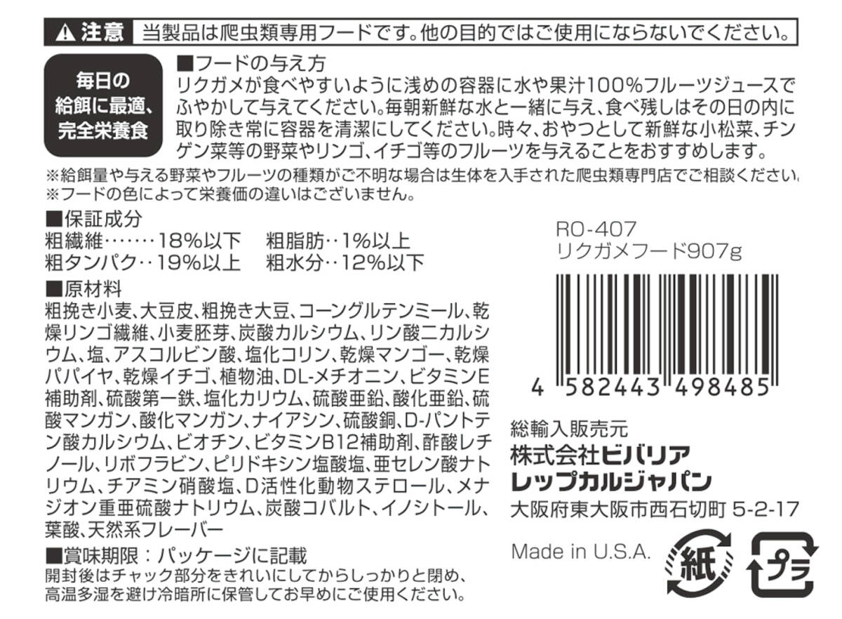 注意 当製品は爬虫類専用フードです。他の目的ではご使用にならないでください。