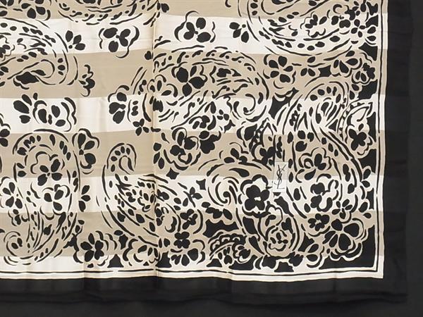■美品■ YVESSAINTLAURENT イヴサンローラン スカーフ ストール ショール 大判 レディース ブラック系×マルチカラー DG1606
