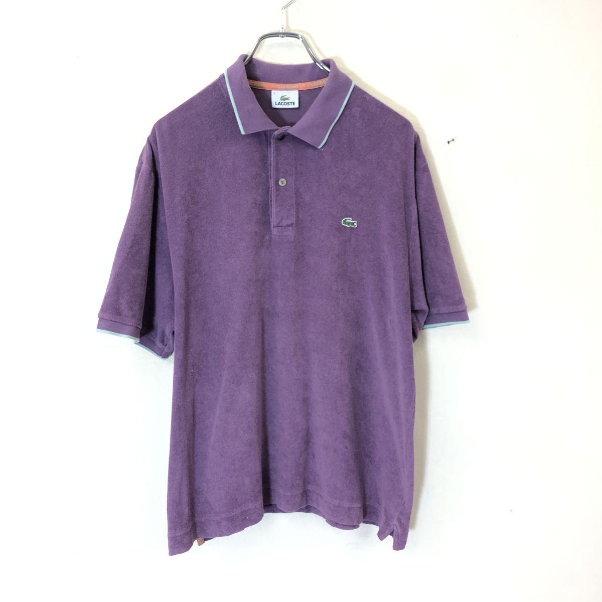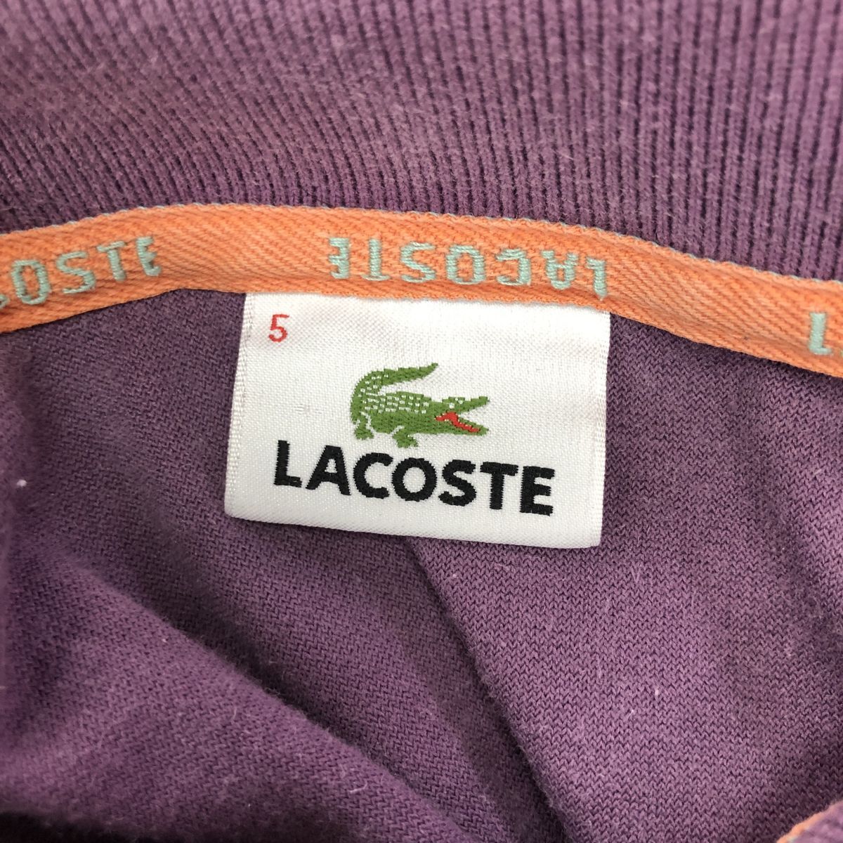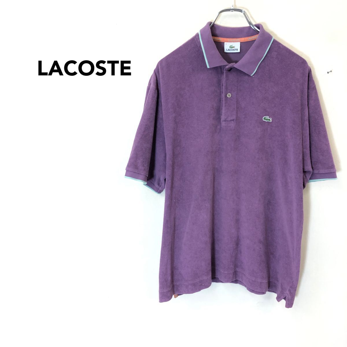 2K1430-O◆LACOSTE ラコステ 半袖ポロシャツ 刺繍ロゴ ワンポイント 袖口リブ ◆size5 パープル