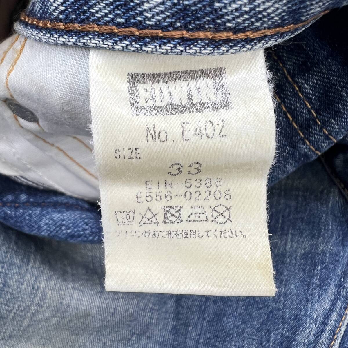エドウィン E402 デニム ジーンズ ジーパン テーパード W33 メンズ ダメージリペア ●Ja9095