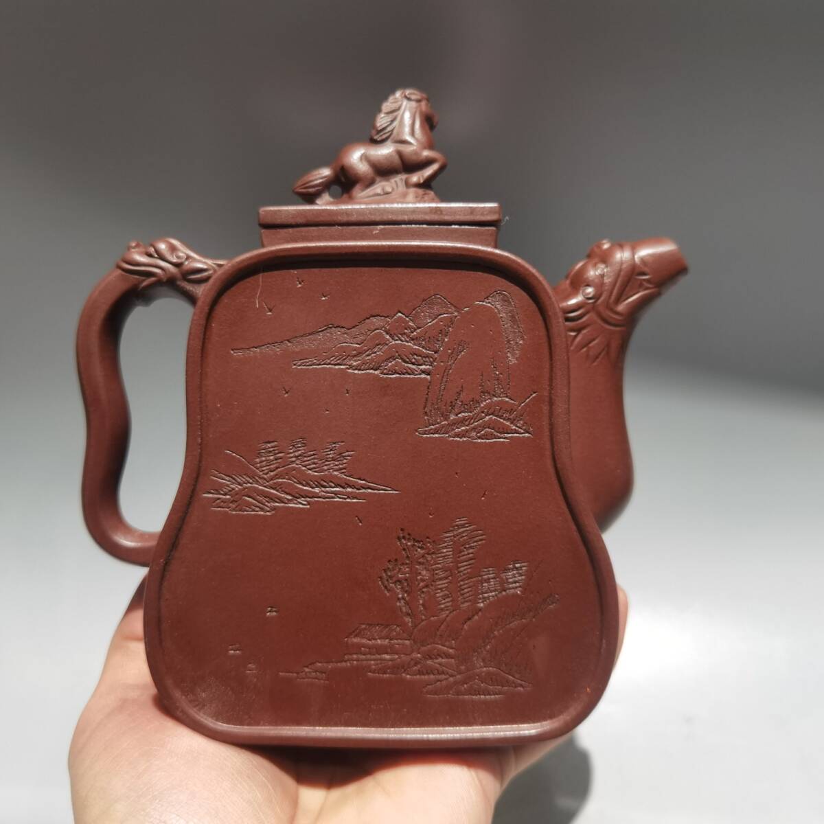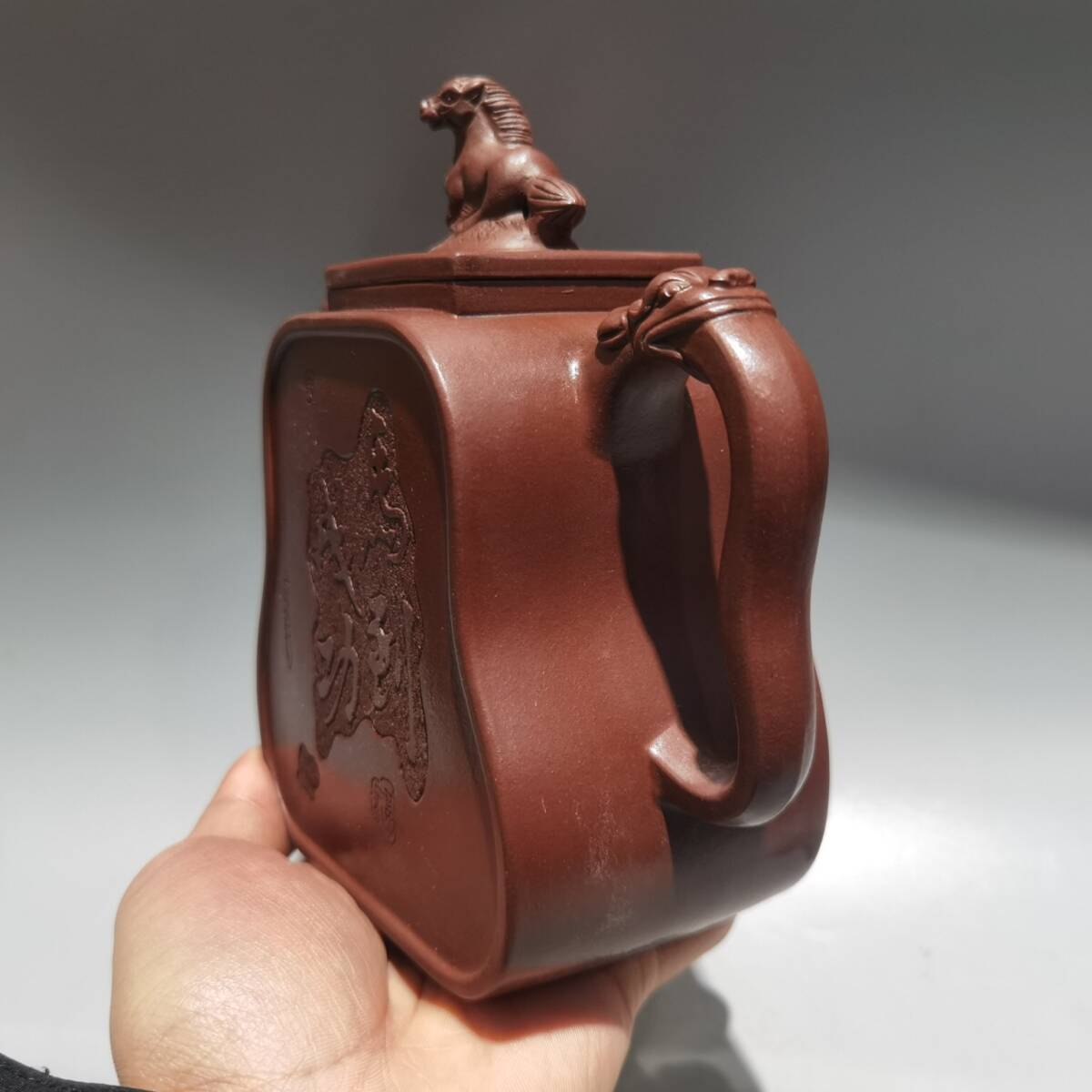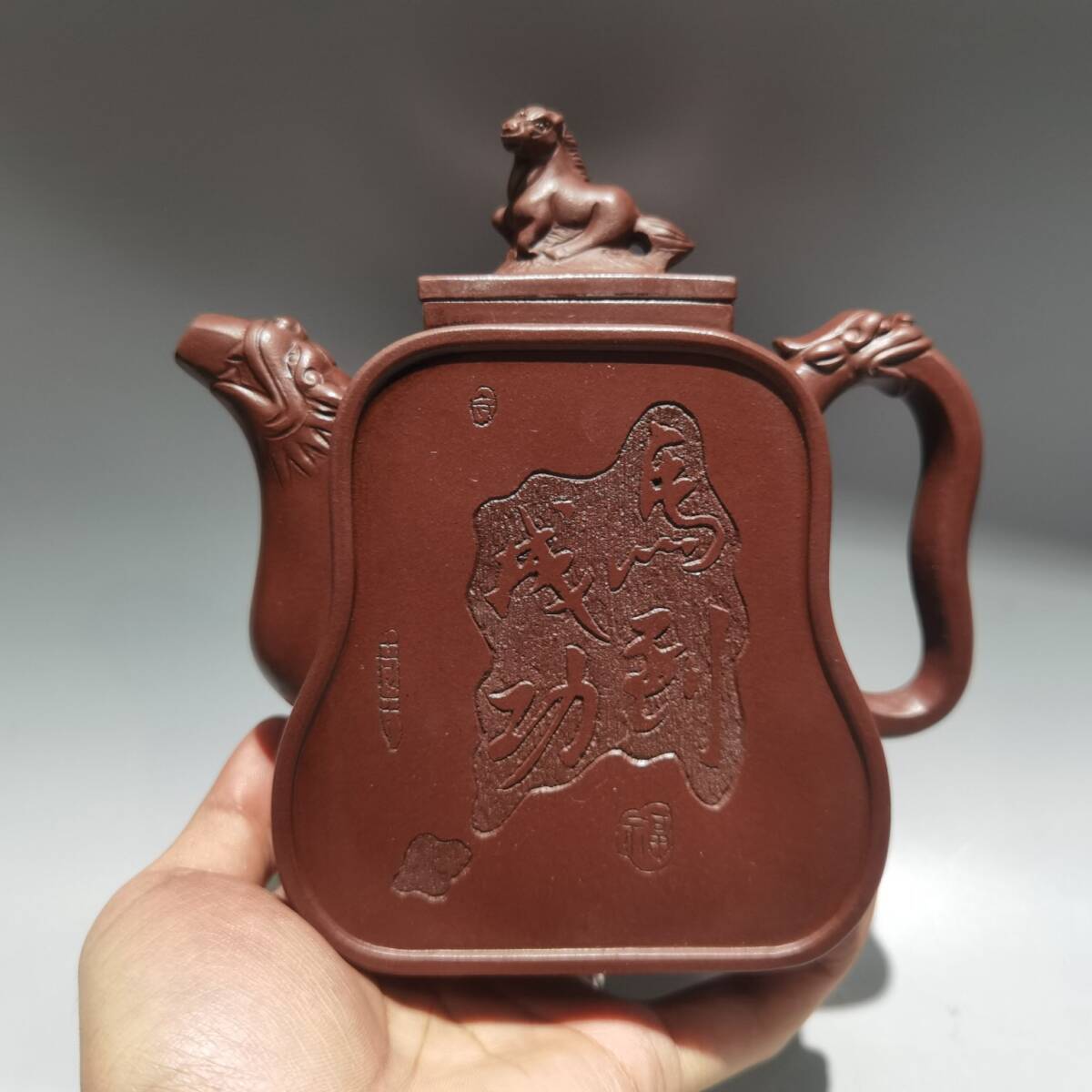 【超珍館蔵】紫砂壺 馬到成功壺 金鼎商標款 紅泥 茶具 茶道品 置物 賞物 古賞物 古董品 古美術品 時代物 旧家蔵出 稀少珍蔵品