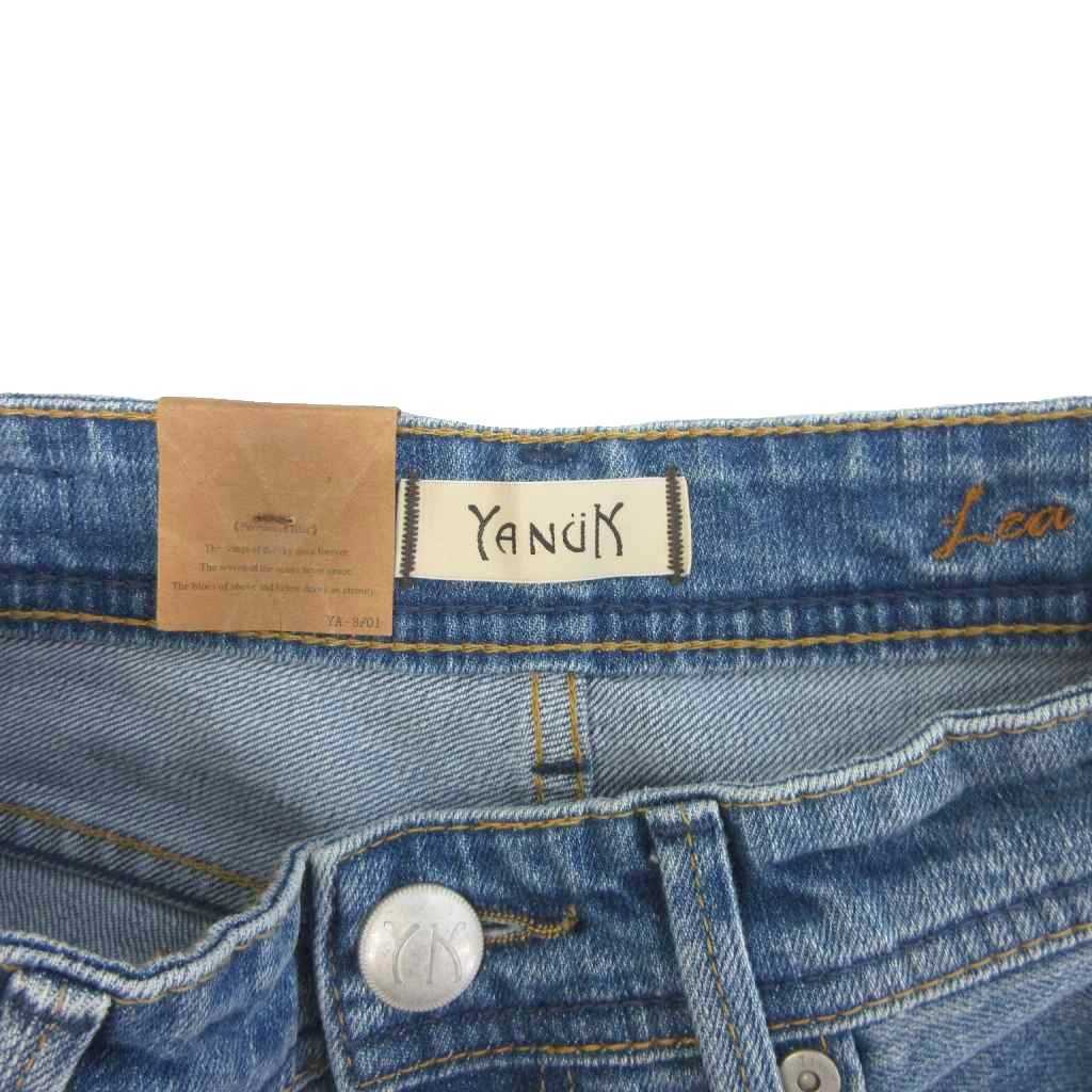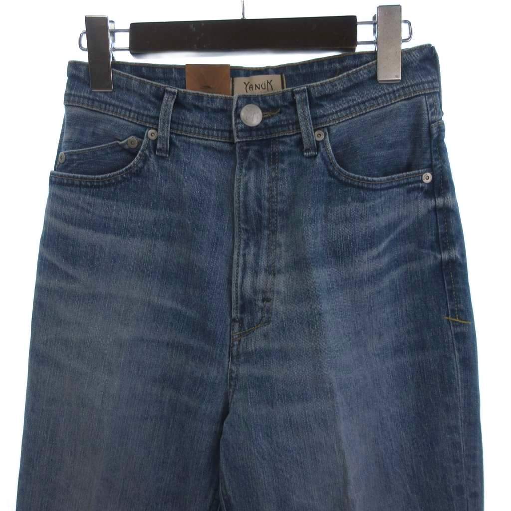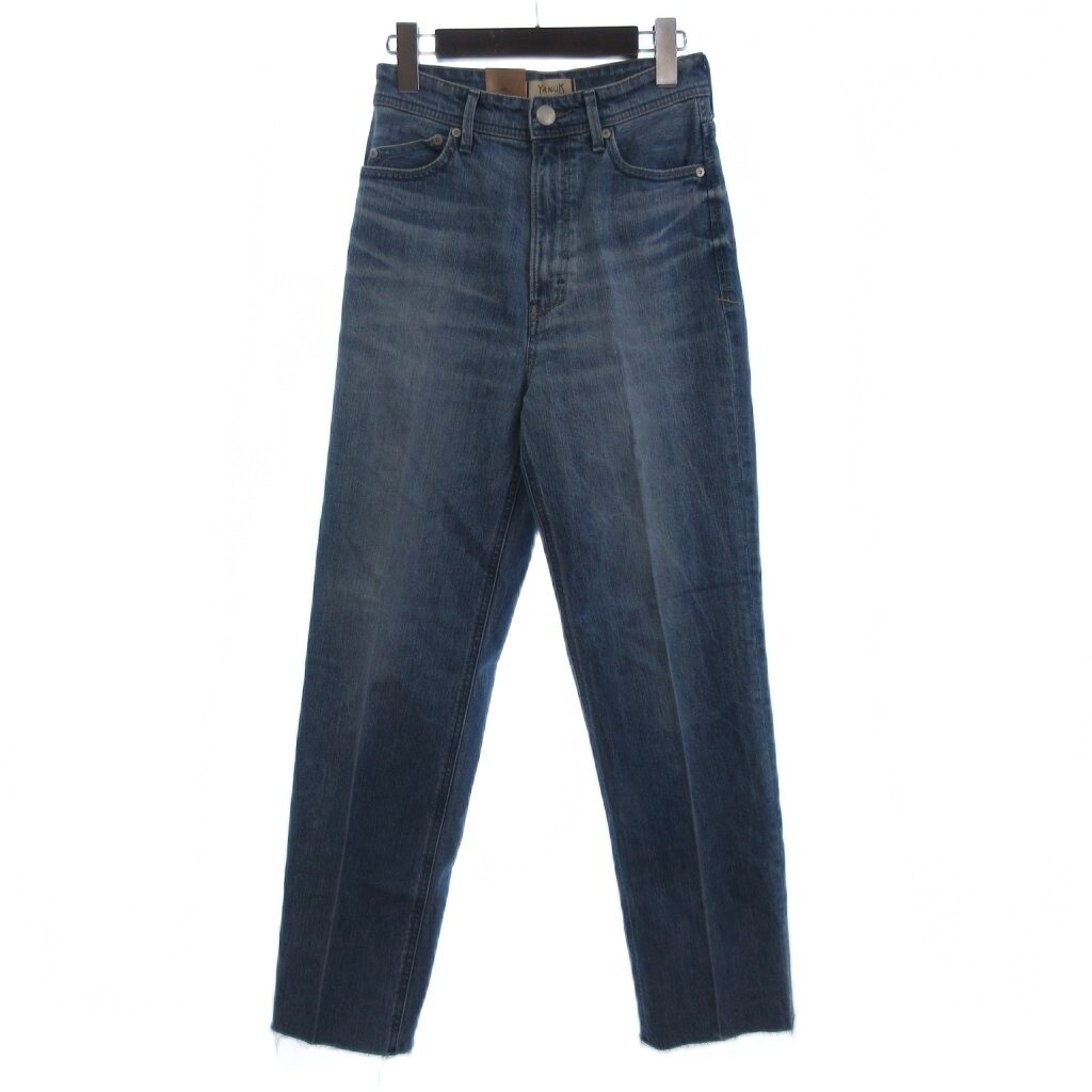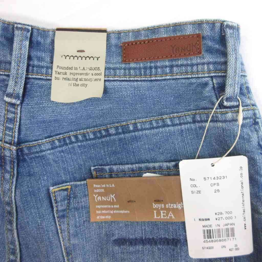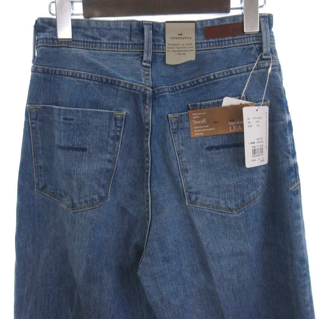未使用品 ヤヌーク タグ付き LEA ボーイズストレートジーンズ デニムパンツ 切りっぱなし インディゴ 青 ブルー 25 レディース