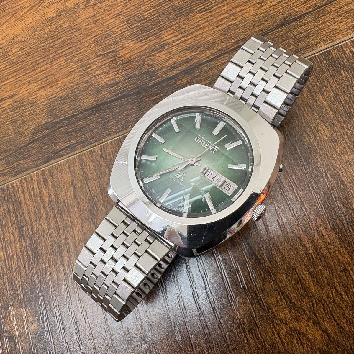 オリエント ORIENT 腕時計 クロノエース 自動巻き 稼働 C429-64161 カットガラス グリーン 文字盤