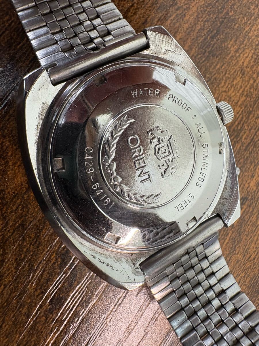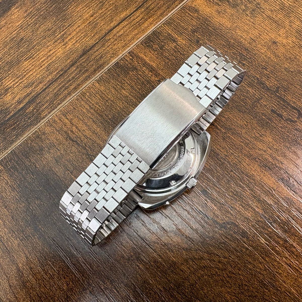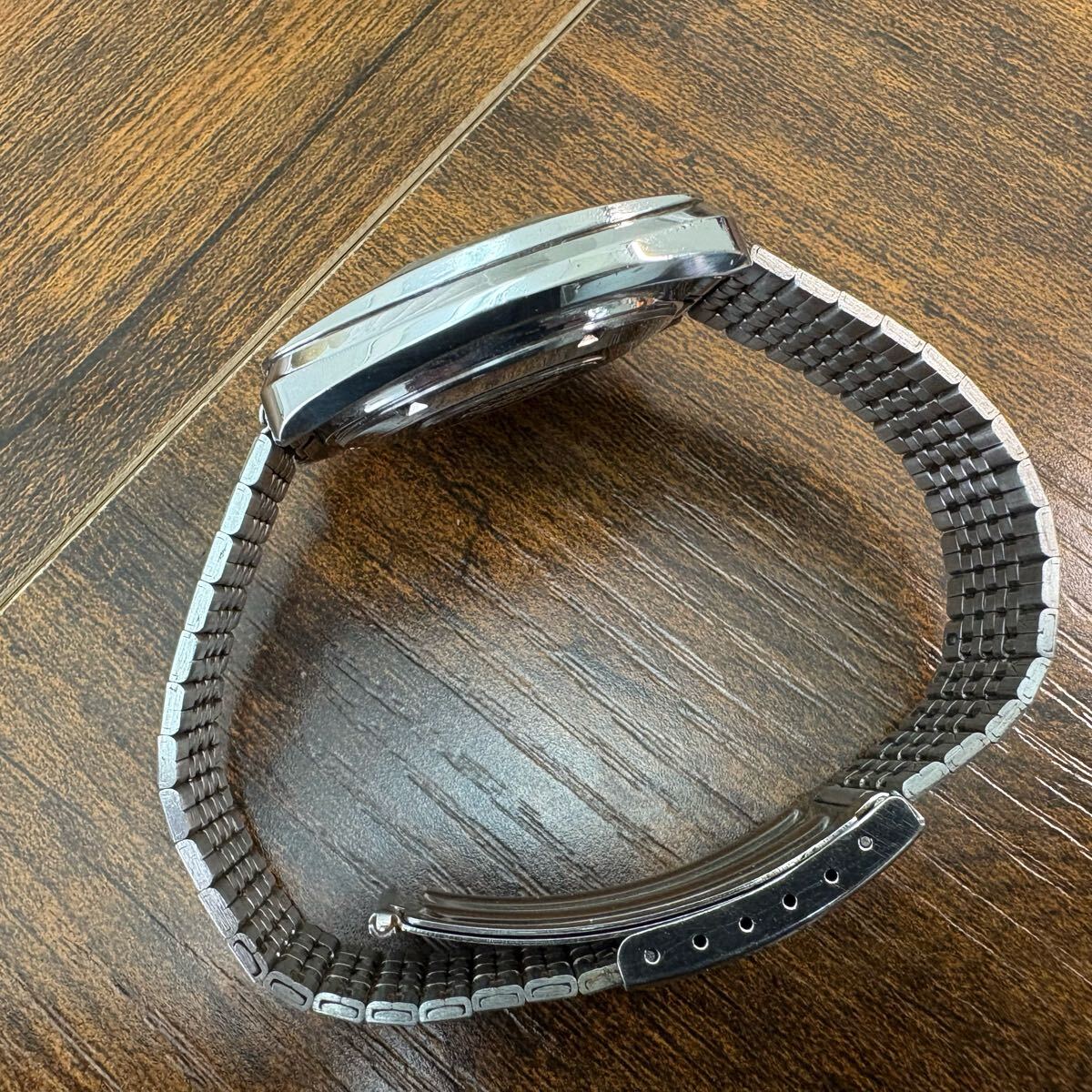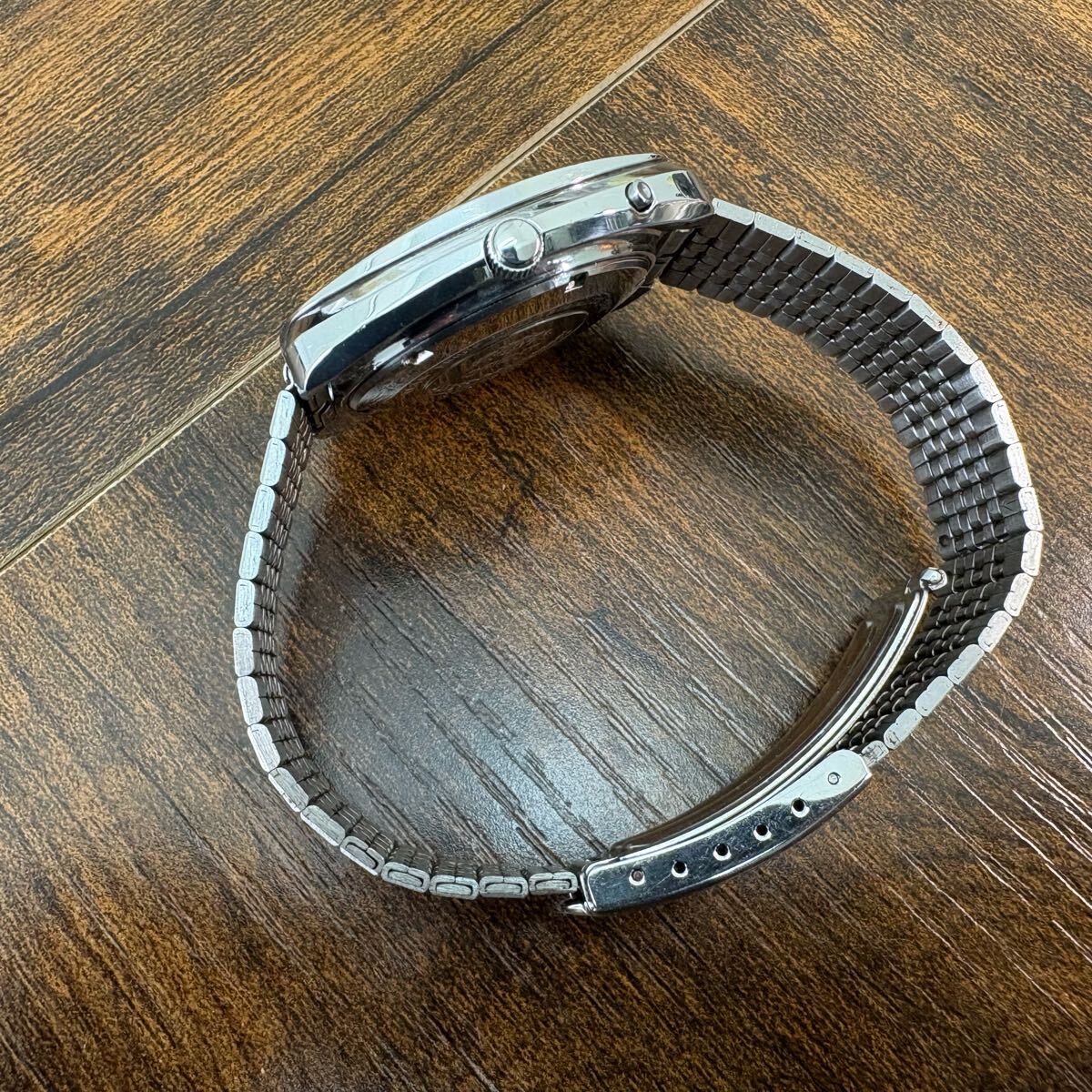 70sらしいカラフルなダイヤルとカットガラス、そして肉厚ケース。存在感のある時計です。