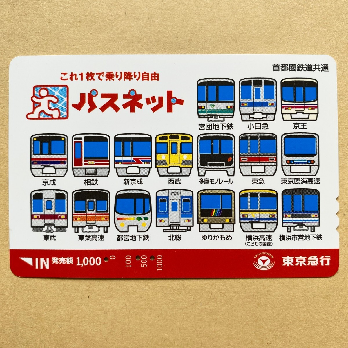 【使用済】 パスネット 東京急行電鉄 東急電鉄 導入17社局の車両 イラスト