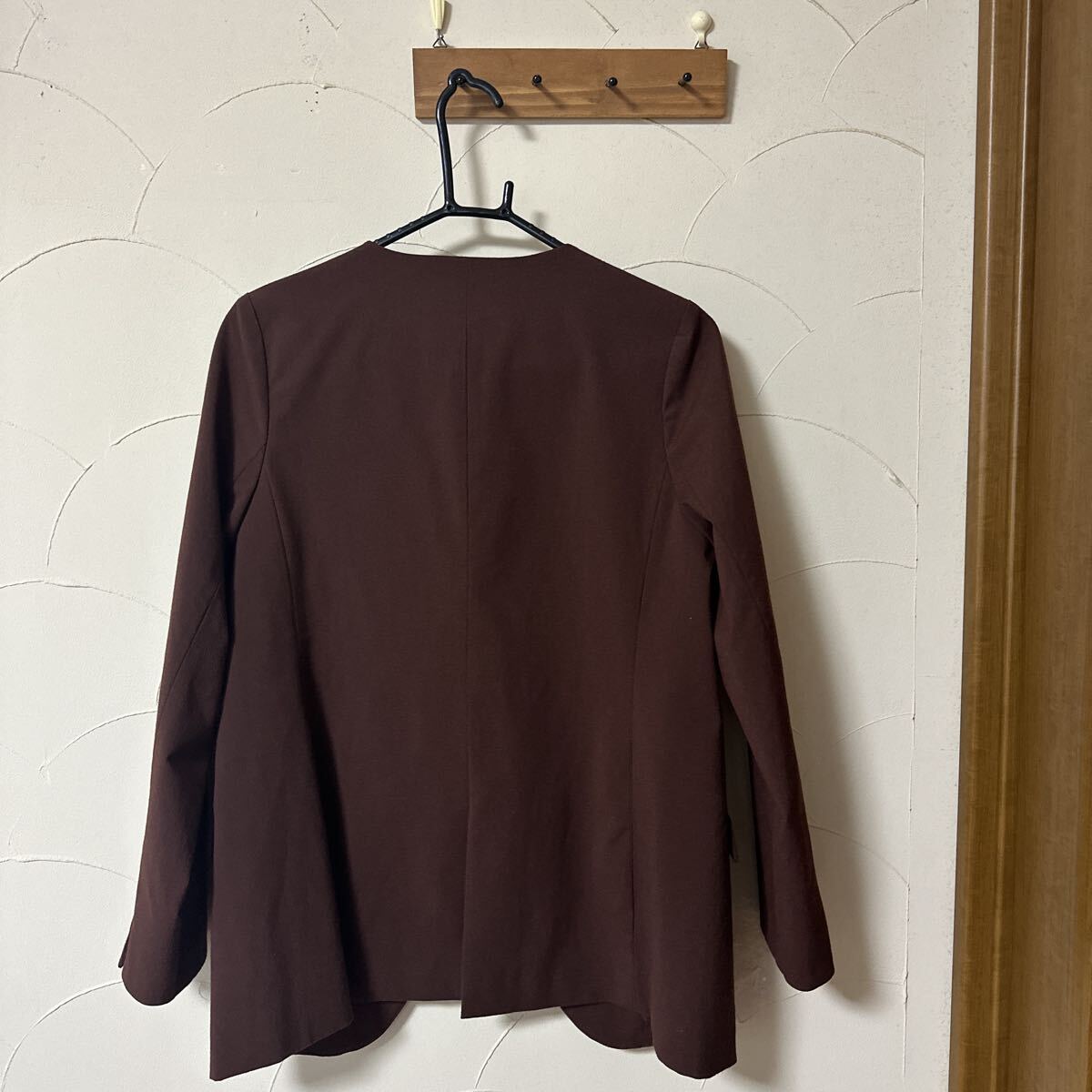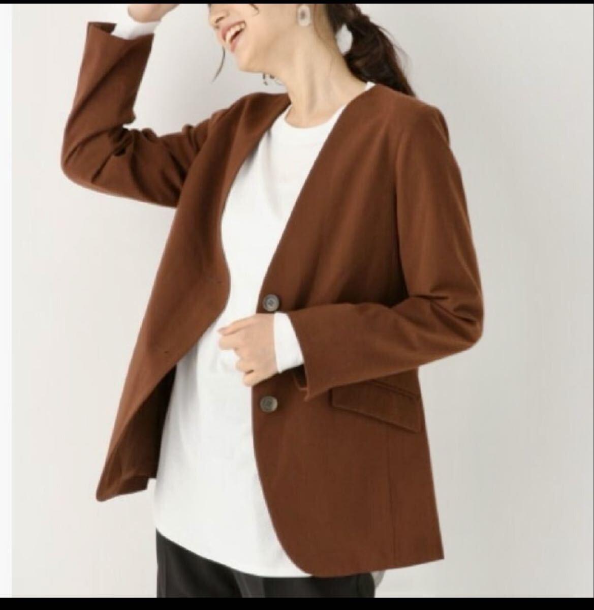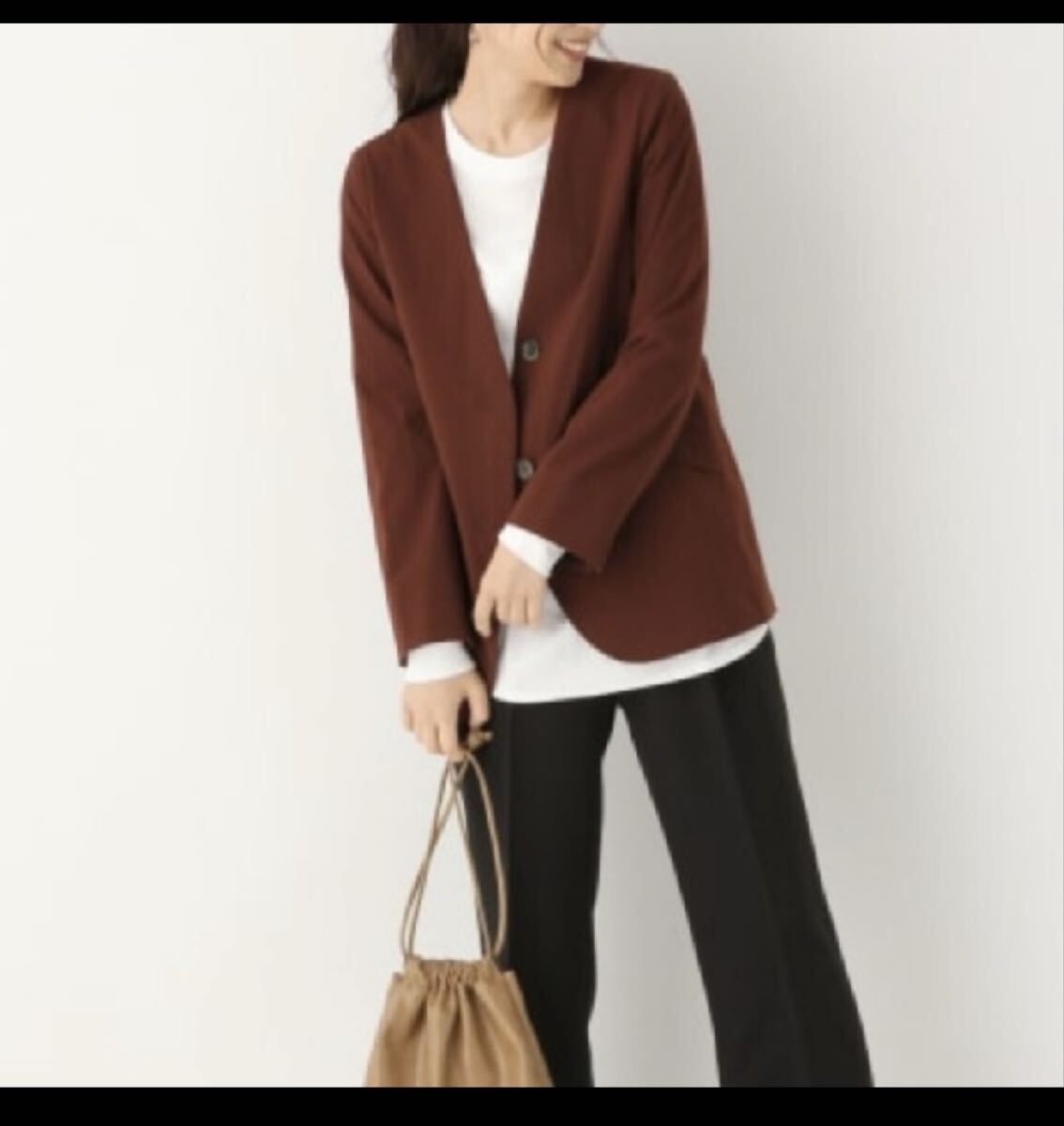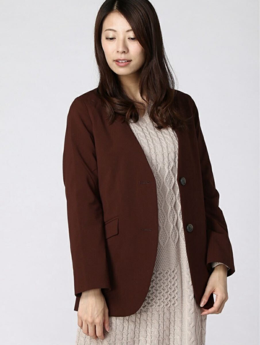 秋コーデで活躍ノーカラージャト型くずれしにくいTRストレッチ素材を使用した 着流し感覚で羽織れるノーカラー型のジャケットです。 タイト過ぎない縦長シルエットで、パンツにはもちろん、 スカートやワンピースにも相性抜群。