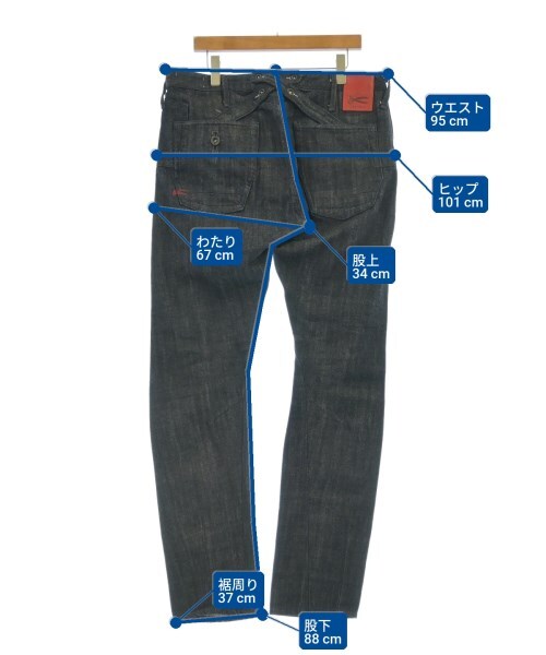 ウエスト:95cm,裾周り:37cm,ヒップ:101cm,わたり:67cm,股上:34cm,股下:88cm |