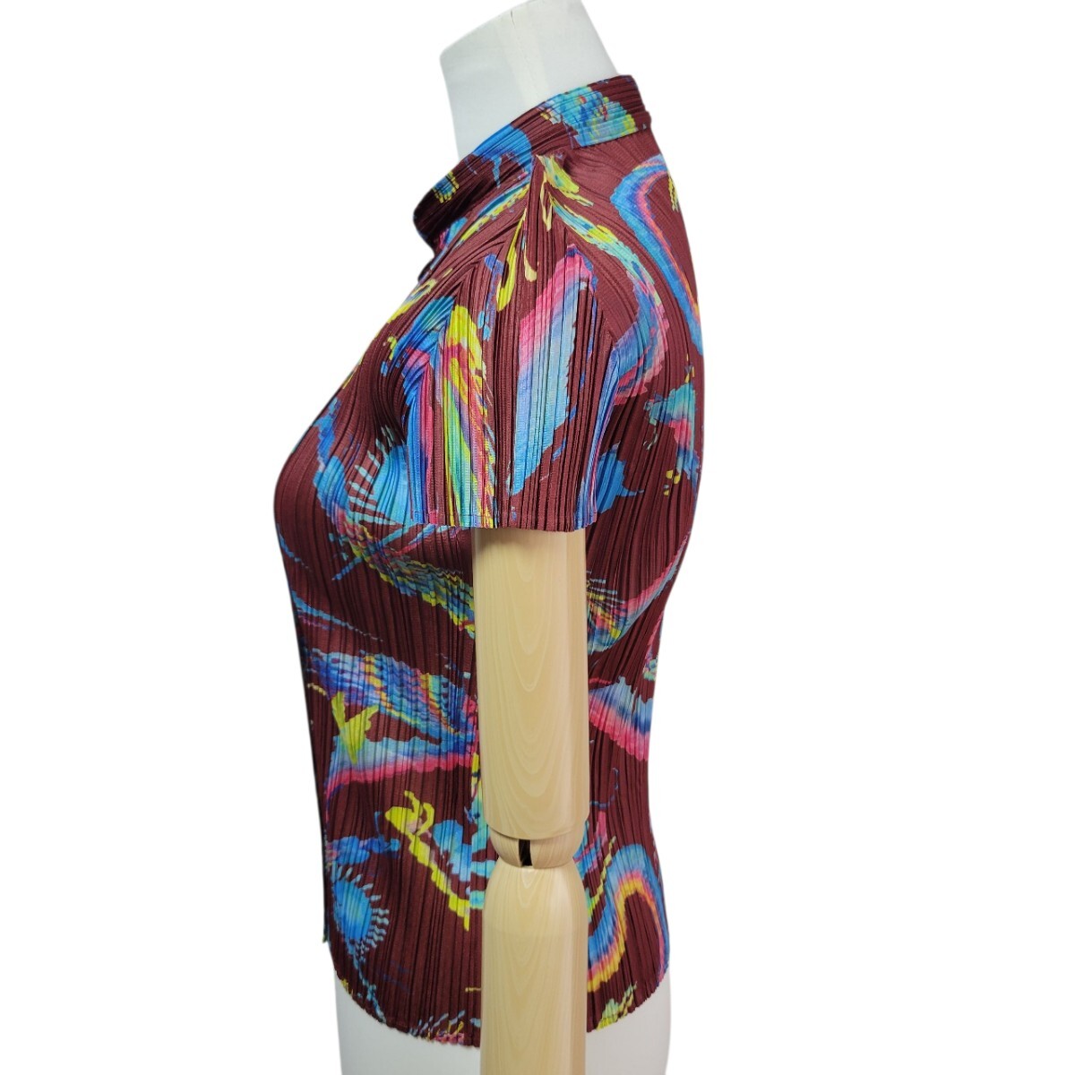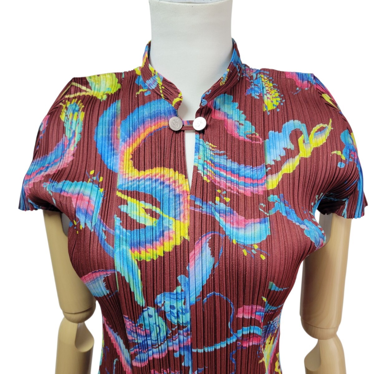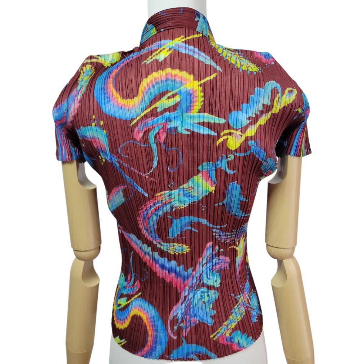 プリーツプリーズ イッセイミヤケ 幻獣 総柄 龍 チャイナボタン カットソー 半袖トップス ブラウス PP63-JK632