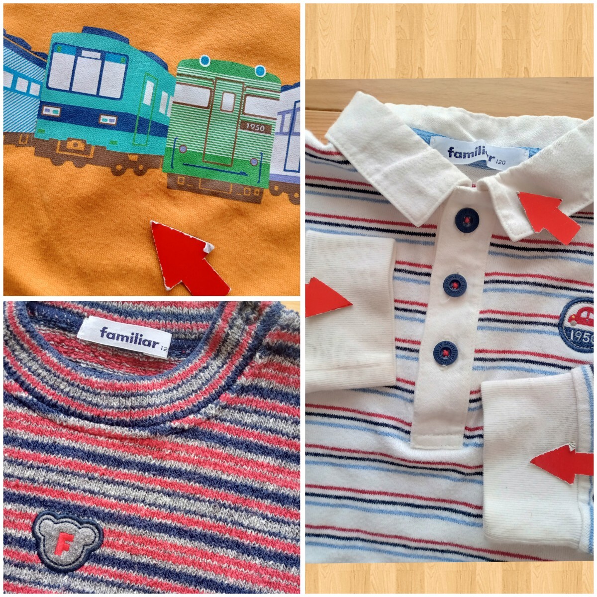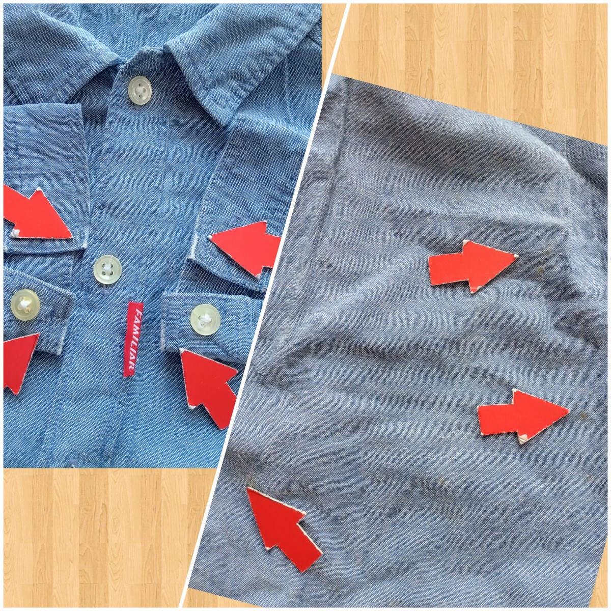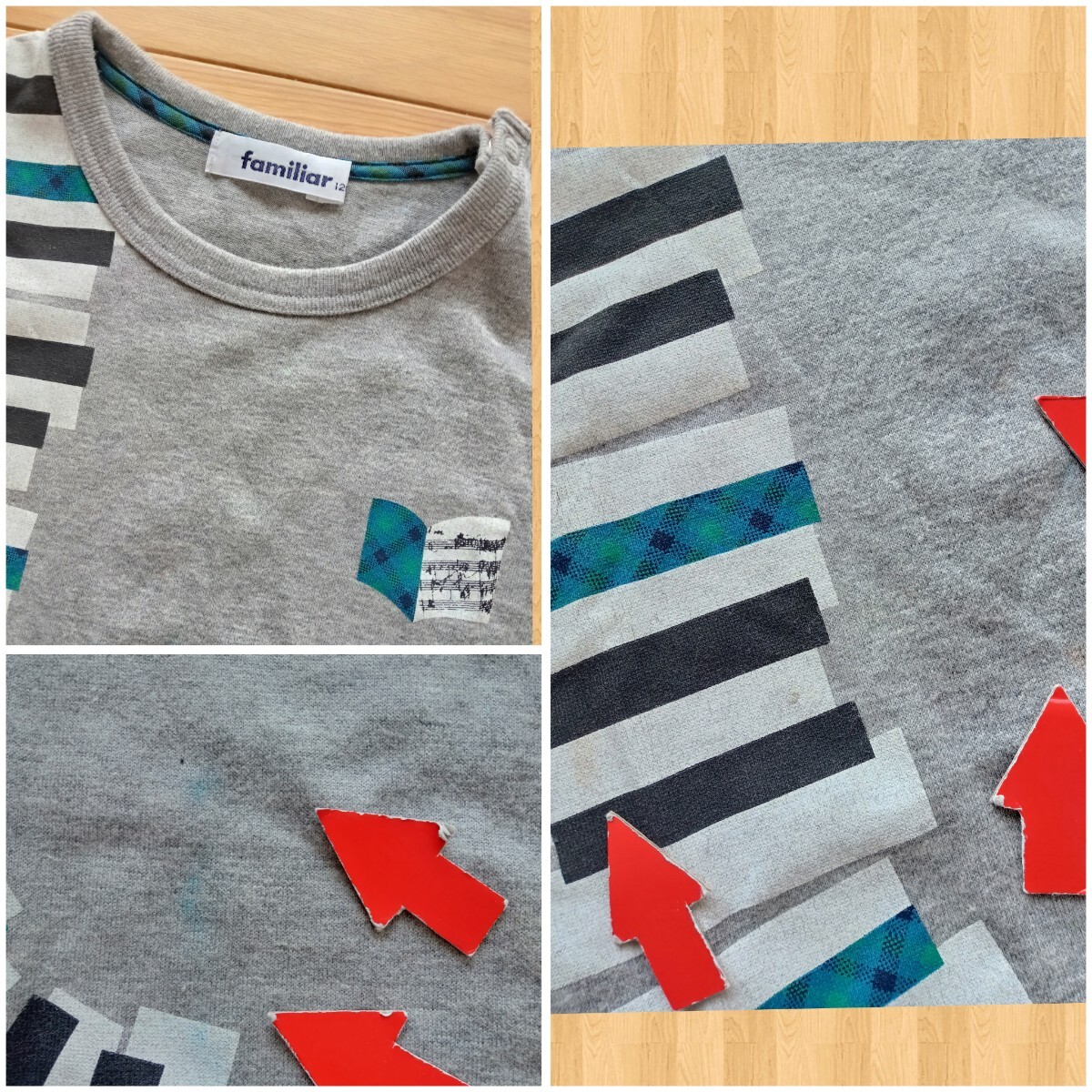 全体に着用感と全体に毛羽立ち、色褪せ、破れ補修1か所有