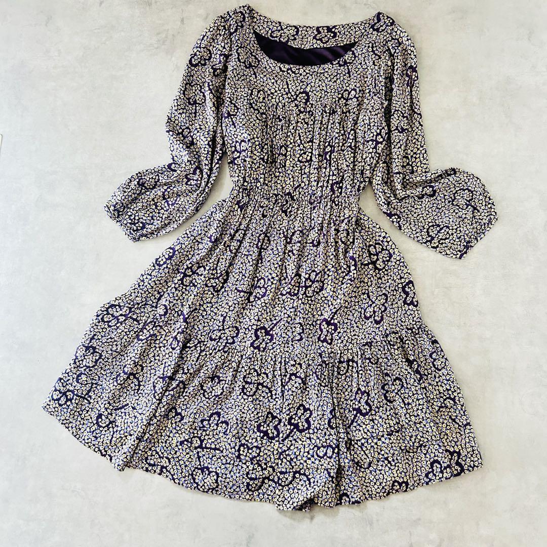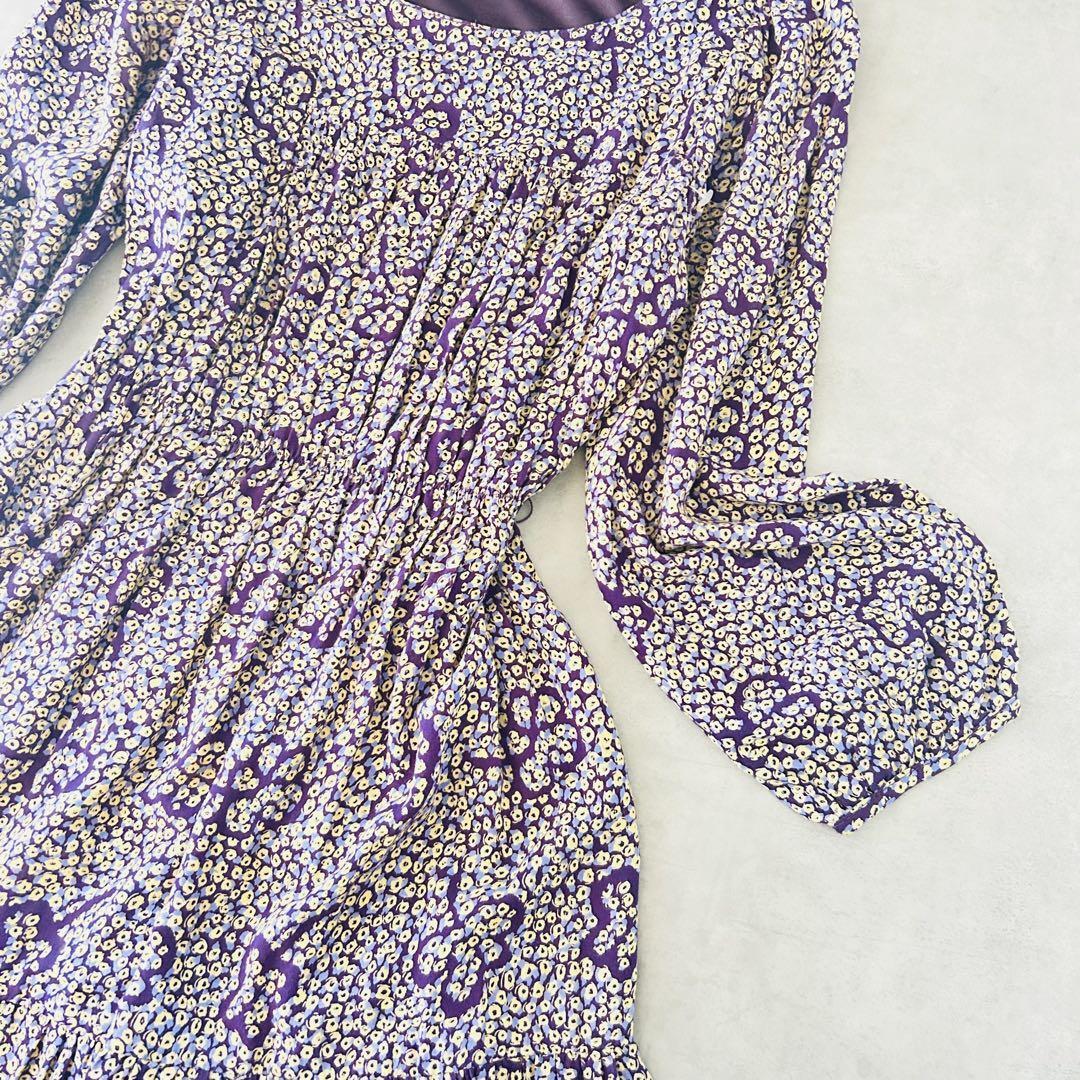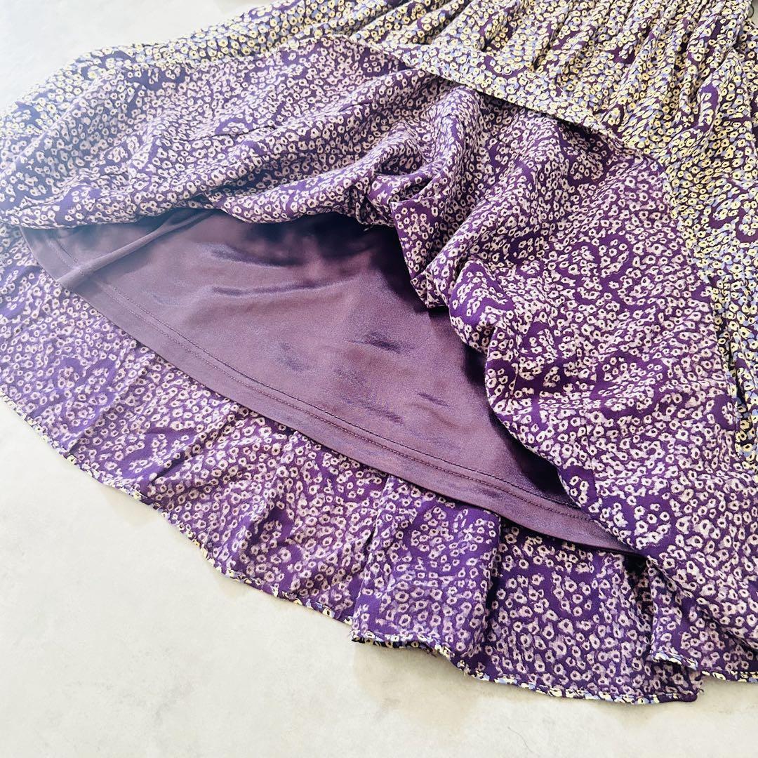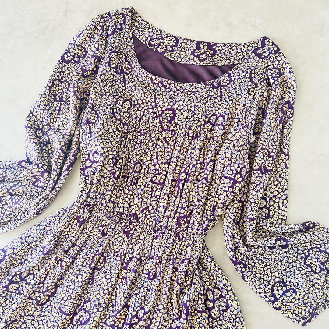 鮮やかなパープルベースにイエローの小花柄が映える一枚。