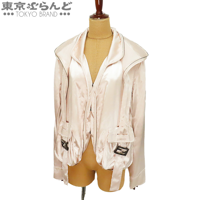 101805368 フェンディ FENDI サテンジャケット FJ7405 ALMOND レーヨン ジップ ブルゾン パデット 38 アウター レディース