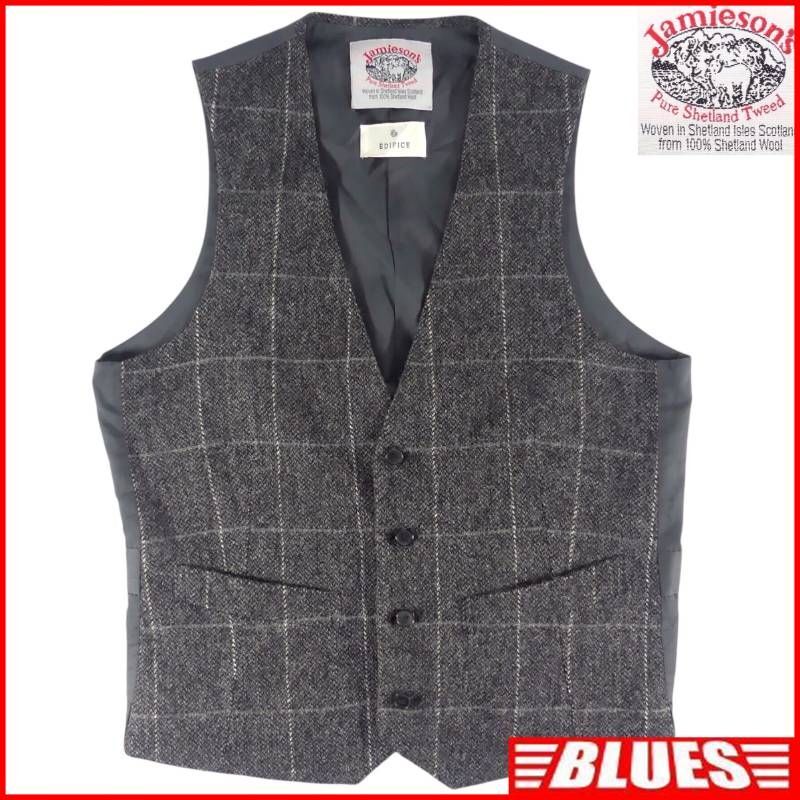 即決★Jamieson’s DIFICE 別注★メンズ M ベスト エディフィス ジャミーソンズ 46 チャコールグレー チェック ジレ