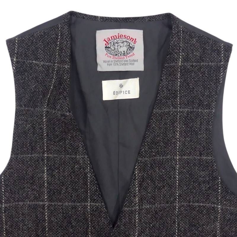 Jamieson’s ジャミーソンズ DIFICE エディフィス 別注 ベスト M シェットランドツイード 46 チャコールグレー グレンチェック ウール ジレ 古着 メンズ ベストサイズM一覧←SEULB屋着古← TY3996