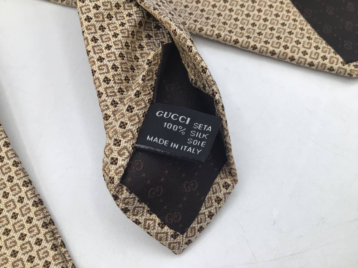 M4365 GUCCI グッチ ネクタイ シルク100 ベージュ Gロゴ 紳士 メンズ ブランド ロゴ