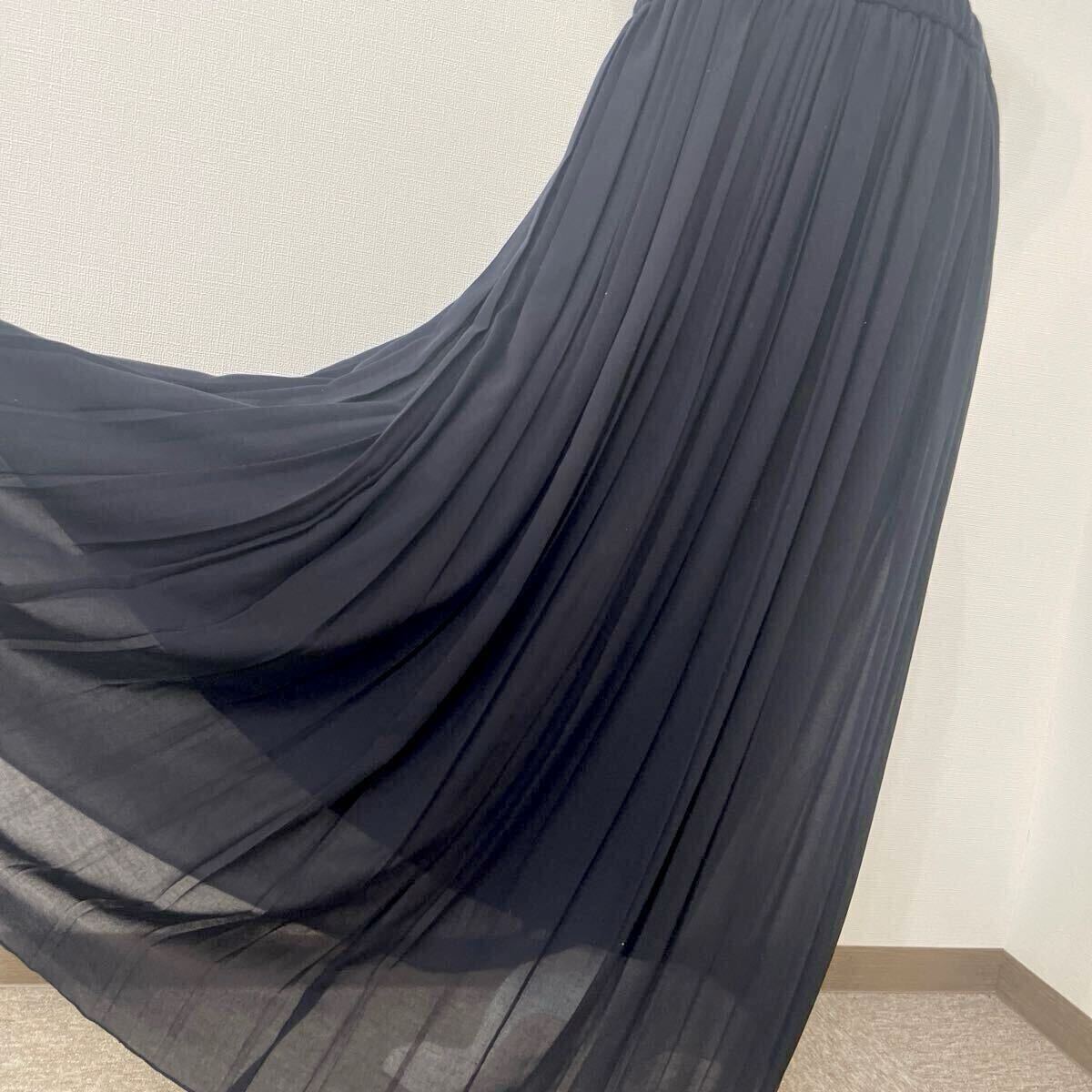 【345】アンタイトル UNTITLED ネイビー プリーツスカート 濃紺 大きいサイズ マキシスカート フレアロングスカート サイズ42 紺色