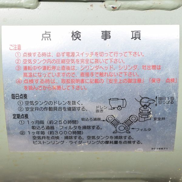 ご覧頂き誠にありがとうございます。 新潟県三条市から、 日立 BEBICON エアーコンプレッサー を出品致します。 ◆寸法 全長約 83cm×奥行約 31cm×全高約 75cm 通電後、基本動作を確認致しました。 実作業による実演での動作は未確認の状態です。 記載寸法は簡易的な採寸のため多少の誤差はご了承ください。 出品内容は画像内の物が全てになり、現状引渡しとなります。 ネット上で商品状態を完全に表記することは困難であり、 個人的観点や見落し等により記載漏れが生じてしまう可能性も御座います。 また限られた画像内では正確にご確認いただけない点も御座いますので、 入札をご検討の際には事前の現物確認を是非ともお勧め致します。 即決のご商談や商品確認等のお問い合わせは、 質問欄もしくは下記メールアドレス宛に直接ご連絡下さい。 【 tool_base_sanjo@yahoo.co.jp 】 商品確認/引渡しは定休日(火曜・水曜)以外の 11:00~17:00にお願い致します。 定休日又は営業時間外の取引連絡やご質問への対応はお時間を頂きますので 予めご了承ください。 ------------------------------------------------------------ 住所:新潟県三条市上保内甲793 定休日:火曜・水曜(GW、年末年始など一部例外有り) 営業時間:9:00~19:00 ------------------------------------------------------------ ご希望通りの指定日・時間帯では承れない場合も御座います。 予めご希望日時をご連絡いただきますようお願い致します。 |