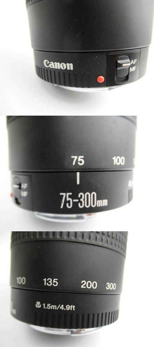 | ◇中古品◇カメラレンズ◇ キャノン canon ULTRASONIC 望遠ズームレンズ EF 75-300mm F/4-5.6 Ⅲ USM レンズフードEW-60C付き 管理番号:35272/S1 【買取品・中古品】 【内容】 キャノン canon 望遠ズームレンズ・・・1個 EF 75-300mm F/4-5.6 Ⅲ USM レンズフードEW-60C・・・1式 【状態】 中古のお品です。 細かな汚れ・小傷・レンズ内外の汚れの付着、 ラバー部分のベタ付き等がございます。 カメラにセットしての簡易動作確認は行っておりません。 店舗買取品/中古品になります。 詳しい状態は写真でご確認下さい。 ※商品の状態の説明はあくまで出品者の主観に基づいた説明です。 ※店舗保管品です。 ※新品の様な完璧な状態では御座いません。 ※ご理解頂ける方のご入札をお願い致します。 ご入札前に必ず全文をお読みになり、 お客様が十分にご納得された上でのご入札、 ノークレーム・ノーリターンでお願い致します。 入札の取消は行っておりませんのでご注意下さい。 (ご入札された時点で同意頂いたものとします) ※画像のものがすべてになります。 ※店舗保管品の為、多少のスレキズ等ある場合が御座います。 ※専門知識が無いため質問にお答えできない場合が御座います。 ※素人検品・撮影の為写真に写り切らない汚れ・キズがある場合が御座います。 ※新品の様な100%完璧な状態では御座いません。 ※念入りに検品しておりますが見落としがある場合が御座います。 ※神経質な方、完璧をお求めの方は入札をお控え下さい。 ※御理解頂ける方のご入札をお願い致します。 ※当店はまとめてお取引には対応致しません。 全て単品でのお取引となります。 ※同梱は行っておりません。 ※商品管理上、取り置きは致しませんのでご了承下さい。 | |||